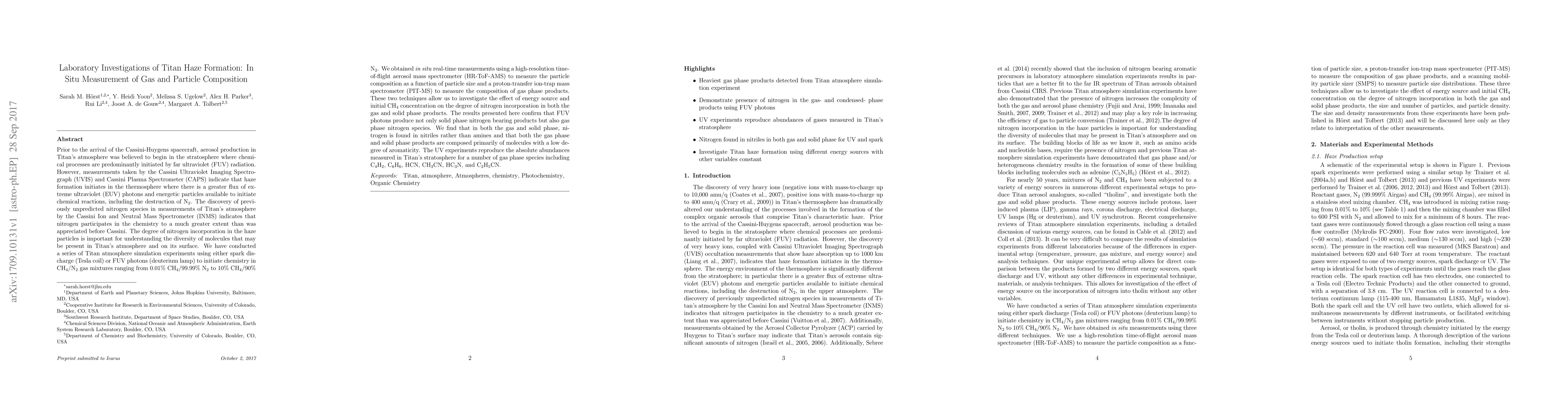 Prior to the arrival of Cassini-Huygens, aerosol production in Titan's atmosphere was believed to begin in the stratosphere where chemical processes are predominantly initiated by FUV radiation. However, measurements taken by Cassini UVIS and CAPS indicate that haze formation initiates in the thermosphere where there is a greater flux of EUV photons and energetic particles available to initiate chemical reactions, including the destruction of N2. The discovery of previously unpredicted nitrogen species in Titan's atmosphere by Cassini INMS indicates that nitrogen participates in the chemistry to a much greater extent than was appreciated before Cassini. The degree of nitrogen in the haze is important for understanding the diversity of molecules present in Titan's atmosphere and on its surface. We have conducted a series of simulation experiments using either spark discharge or FUV photons to initiate chemistry in CH4/N2 gas mixtures (0.01% CH4/99.99% N2 to 10% CH4/90% N2). We obtained in situ real-time measurements using an HR-ToF-AMS to measure the particle composition as a function of particle size and a PIT-MS to measure the composition of gas phase products. These two techniques allow us to investigate the effect of energy source and initial CH4 concentration on the degree of nitrogen incorporation in both the gas and solid phase products. The results presented here confirm that FUV photons produce not only solid phase nitrogen bearing products but also gas phase nitrogen species. We find that in both the gas and solid phase, nitrogen is found in nitriles rather than amines and both the gas phase and solid phase products are composed primarily of molecules with a low degree of aromaticity. The UV experiments reproduce the absolute abundances measured in Titan's stratosphere for a number of gas phase species including C4H2, C6H6, HCN, CH3CN, HC3N, and C2H5CN. [Edited for length]