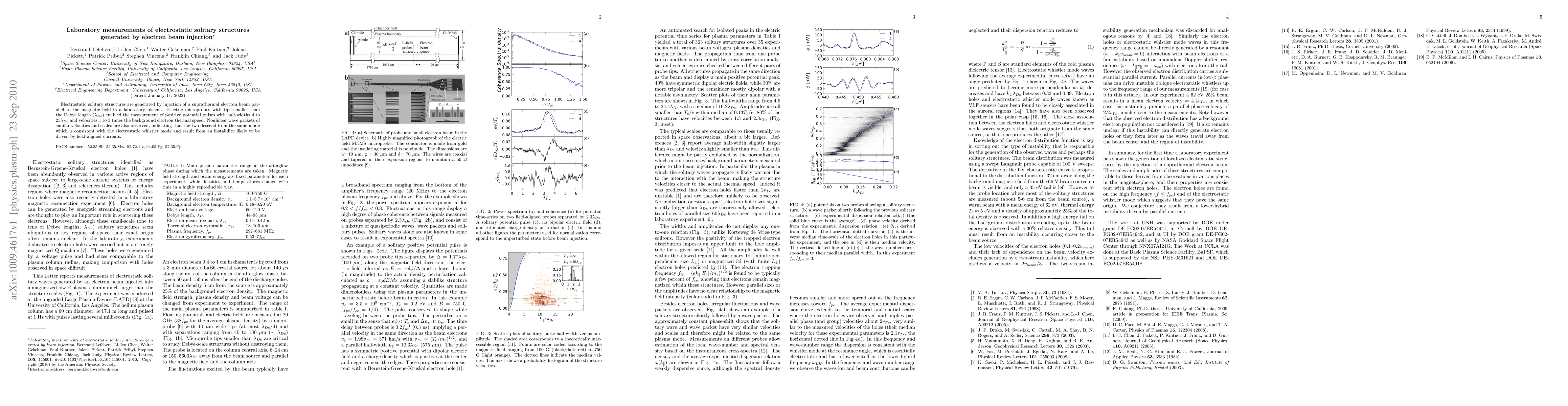 This paper investigates electrostatic solitary structures generated by injecting a suprathermal electron beam into a laboratory plasma, revealing positive potential pulses with varying scales and velocities, consistent with the electrostatic whistler mode and likely driven by field-aligned currents. Measurements were made using electric microprobes with tips smaller than the Debye length.
