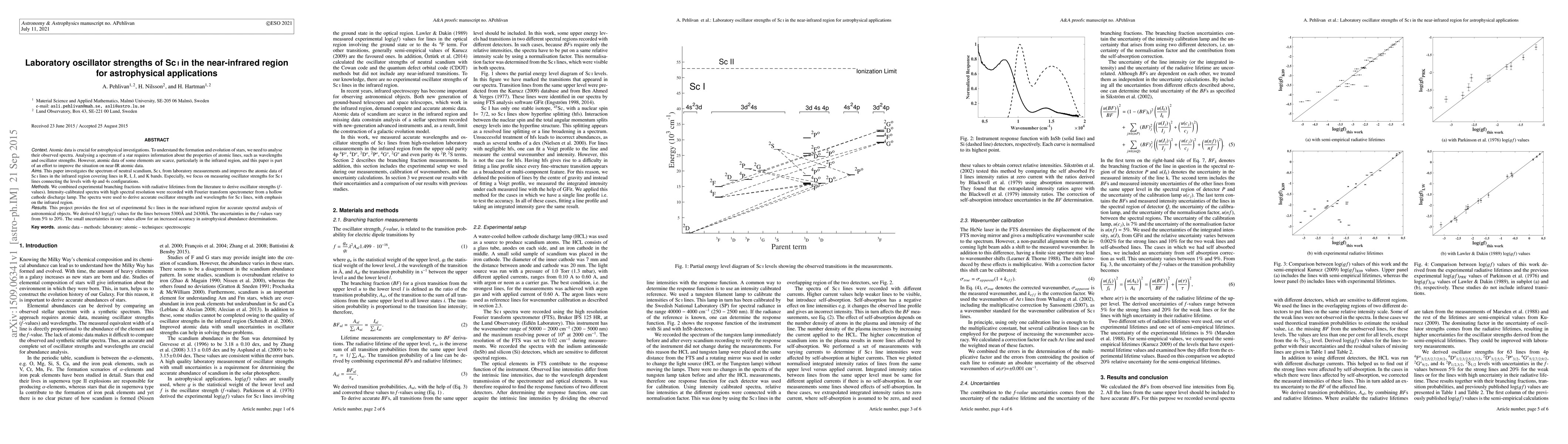 Context. Atomic data is crucial for astrophysical investigations. To understand the formation and evolution of stars, we need to analyse their observed spectra. Analysing a spectrum of a star requires information about the properties of atomic lines, such as wavelengths and oscillator strengths. However, atomic data of some elements are scarce, particularly in the infrared region, and this paper is part of an effort to improve the situation on near-IR atomic data. Aims. This paper investigates the spectrum of neutral scandium, Sc i, from laboratory measurements and improves the atomic data of Sc i lines in the infrared region covering lines in R, I, J, and K bands. Especially, we focus on measuring oscillator strengths for Sc i lines connecting the levels with 4p and 4s configurations. Methods. We combined experimental branching fractions with radiative lifetimes from the literature to derive oscillator strengths (f - values). Intensity-calibrated spectra with high spectral resolution were recorded with Fourier transform spectrometer from a hollow cathode discharge lamp. The spectra were used to derive accurate oscillator strengths and wavelengths for Sc i lines, with emphasis on the infrared region. Results. This project provides the first set of experimental Sc i lines in the near-infrared region for accurate spectral analysis of astronomical objects. We derived 63 log(g f ) values for the lines between 5300{\AA} and 24300{\AA}. The uncertainties in the f -values vary from 5% to 20%. The small uncertainties in our values allow for an increased accuracy in astrophysical abundance determinations.