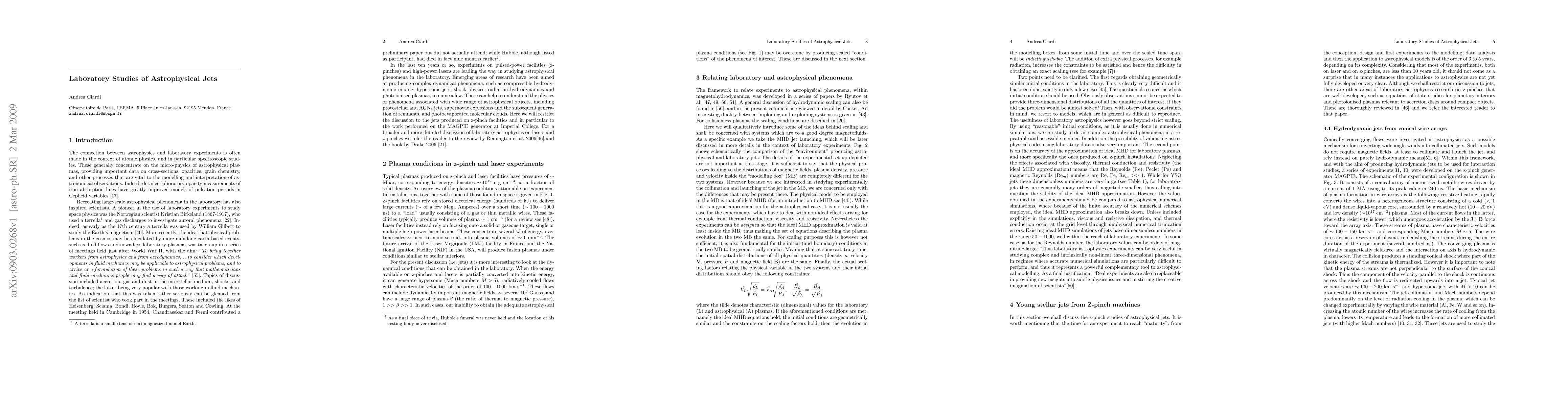 This paper reviews recent laboratory studies using z-pinch machines to simulate astrophysical jets, ranging from micro-jets to super-jets, providing insights into the complex flows observed during star-formation. The focus is on short-lived, centimetre-long jets that offer a complementary approach to understanding these phenomena.