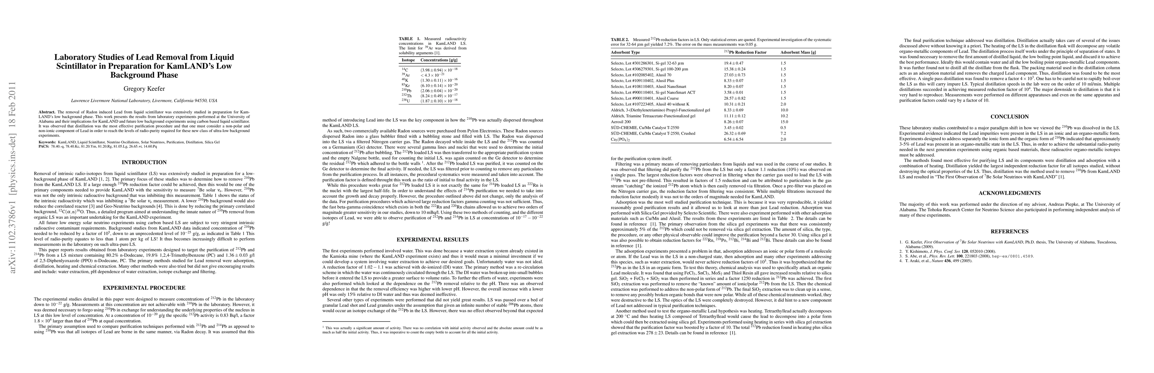 This study investigates the removal of Radon-induced Lead from liquid scintillator, finding distillation to be the most effective purification method. The research highlights the necessity of considering non-polar and non-ionic Lead components to achieve the radio-purity needed for KamLAND's low background phase and similar future experiments.