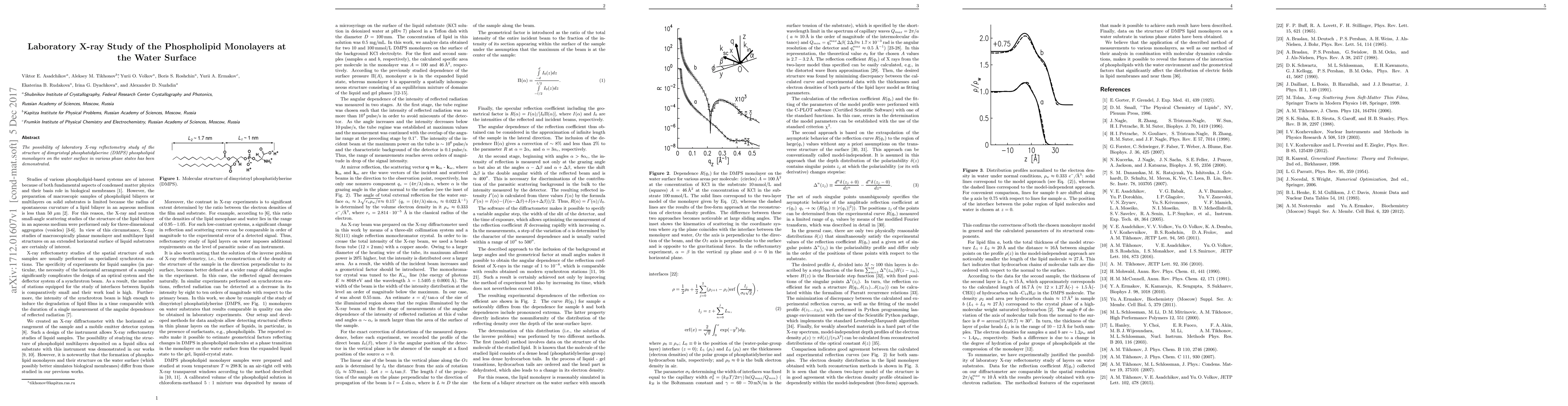 Summary: This study demonstrates the use of laboratory X-ray reflectometry to investigate the structure of dimyristoyl phosphatidylserine (DMPS) phospholipid monolayers on water across different phase states, providing insights into their structural organization.
