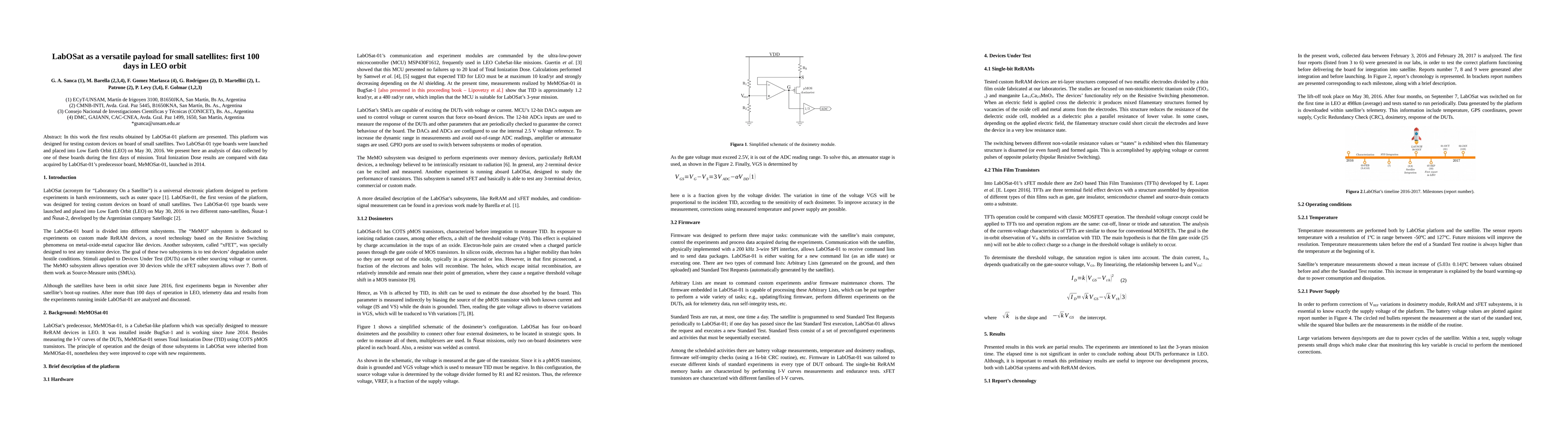 This paper presents initial findings from LabOSat-01, a platform for testing devices on small satellites, after 100 days in LEO. It compares Total Ionizing Dose results with its predecessor, MeMOSat-01, launched in 2014.