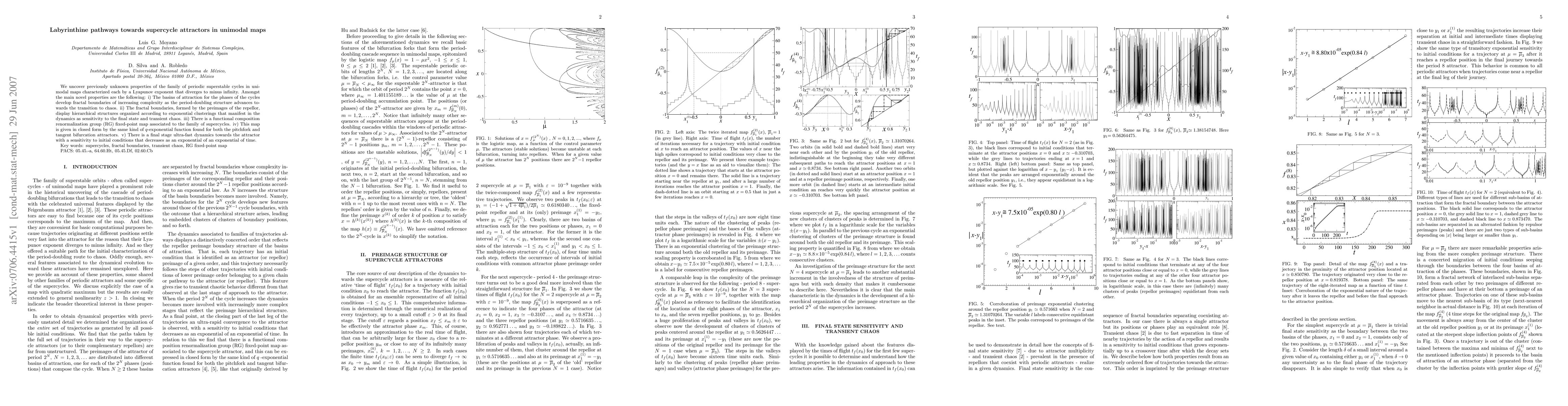 We uncover previously unknown properties of the family of periodic superstable cycles in unimodal maps characterized each by a Lyapunov exponent that diverges to minus infinity. Amongst the main novel properties are the following: i) The basins of attraction for the phases of the cycles develop fractal boundaries of increasing complexity as the period-doubling structure advances towards the transition to chaos. ii) The fractal boundaries, formed by the preimages of the repellor, display hierarchical structures organized according to exponential clusterings that manifest in the dynamics as sensitivity to the final state and transient chaos. iii) There is a functional composition renormalization group (RG) fixed-point map associated to the family of supercycles. iv) This map is given in closed form by the same kind of $q$-exponential function found for both the pitchfork and tangent bifurcation attractors. v) There is a final stage ultra-fast dynamics towards the attractor with a sensitivity to initial conditions that decreases as an exponential of an exponential of time.
