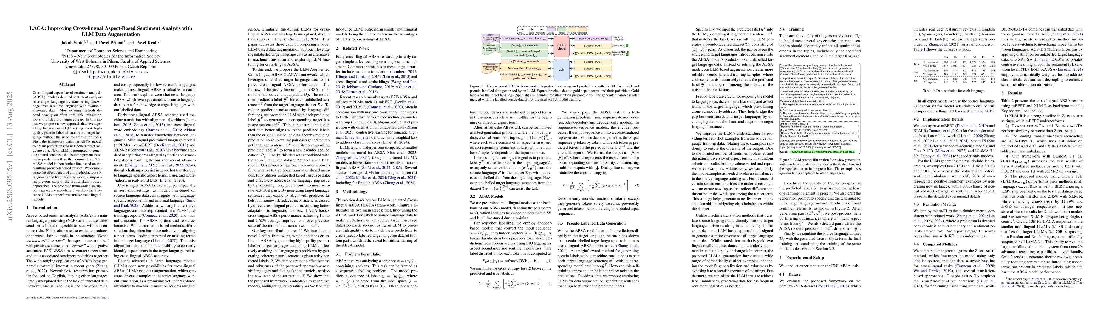 Cross-lingual aspect-based sentiment analysis (ABSA) involves detailed sentiment analysis in a target language by transferring knowledge from a source language with available annotated data. Most existing methods depend heavily on often unreliable translation tools to bridge the language gap. In this paper, we propose a new approach that leverages a large language model (LLM) to generate high-quality pseudo-labelled data in the target language without the need for translation tools. First, the framework trains an ABSA model to obtain predictions for unlabelled target language data. Next, LLM is prompted to generate natural sentences that better represent these noisy predictions than the original text. The ABSA model is then further fine-tuned on the resulting pseudo-labelled dataset. We demonstrate the effectiveness of this method across six languages and five backbone models, surpassing previous state-of-the-art translation-based approaches. The proposed framework also supports generative models, and we show that fine-tuned LLMs outperform smaller multilingual models.