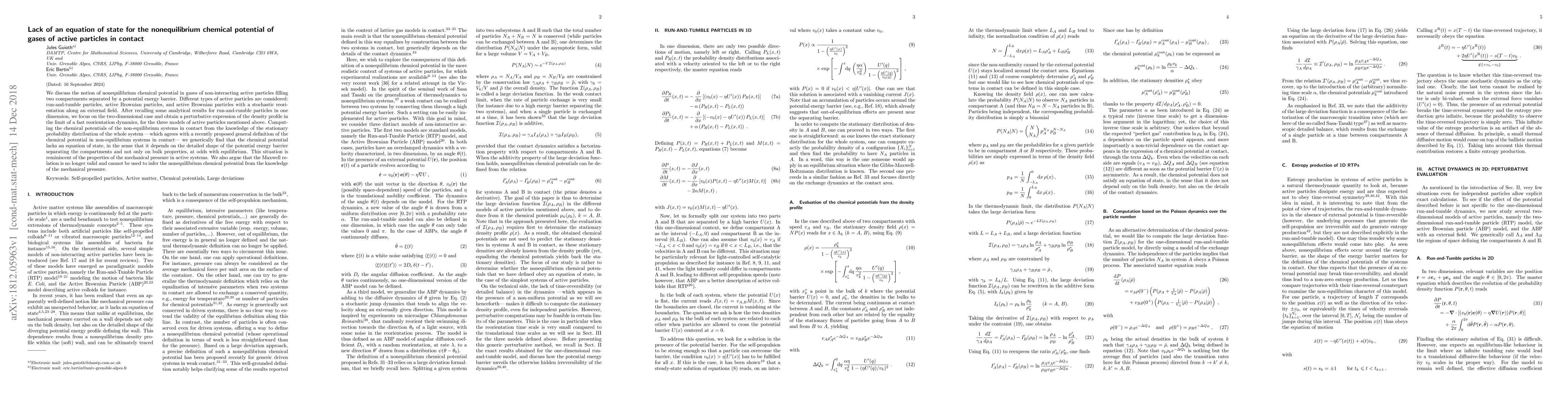 The paper explores nonequilibrium chemical potential in gases of active particles separated by a barrier, finding it depends on the barrier's shape, not just bulk properties, unlike equilibrium systems. The Maxwell relation for inferring chemical potential from pressure is invalid in these systems.