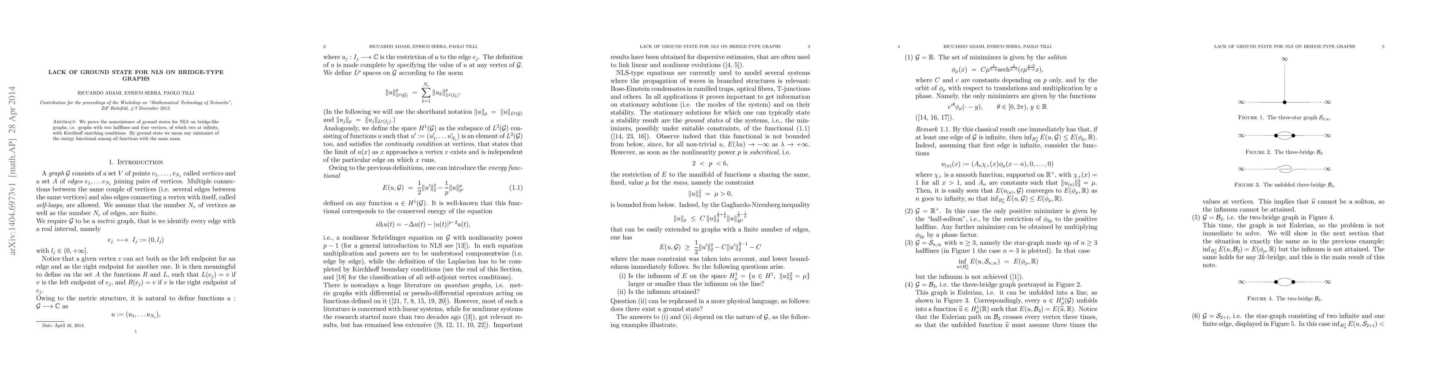 Researchers prove that ground states do not exist for a specific energy functional on bridge-type graphs with Kirchhoff matching conditions, meaning there is no minimum energy configuration.