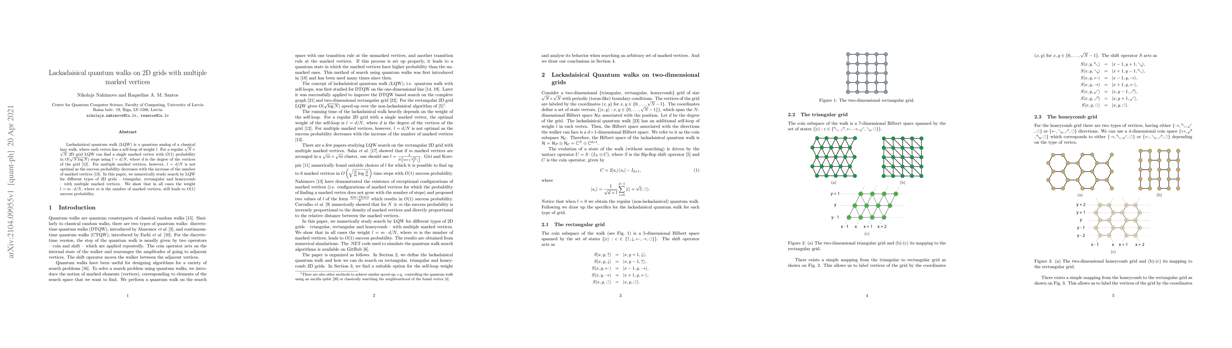 The research employed a combination of theoretical analysis and numerical simulations to investigate the performance of lackadaisical quantum walk search algorithms on various 2D grids.