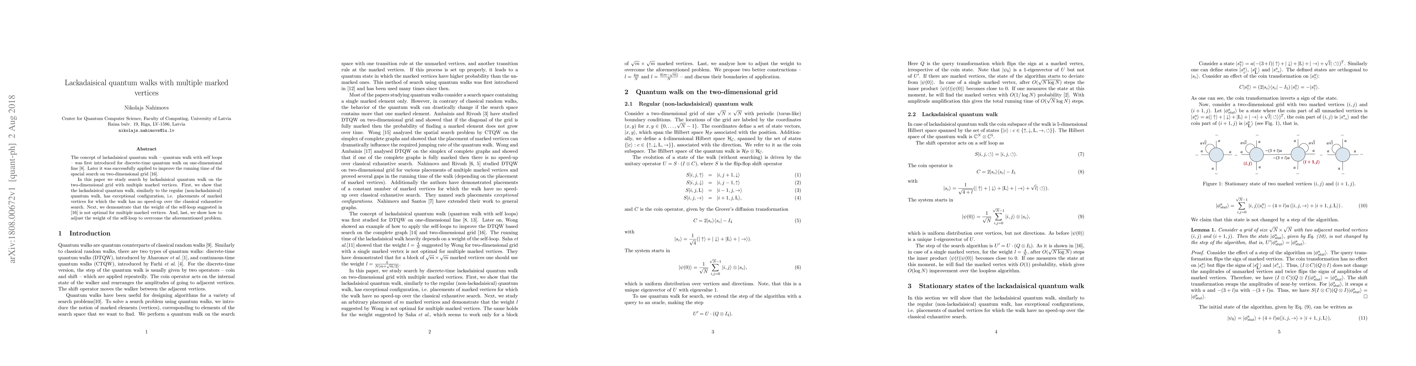 This paper investigates the application of lackadaisical quantum walks—quantum walks with self-loops—on two-dimensional grids with multiple marked vertices, identifying configurations where no speed-up occurs compared to classical search. It also adjusts the self-loop weight to enhance search efficiency.