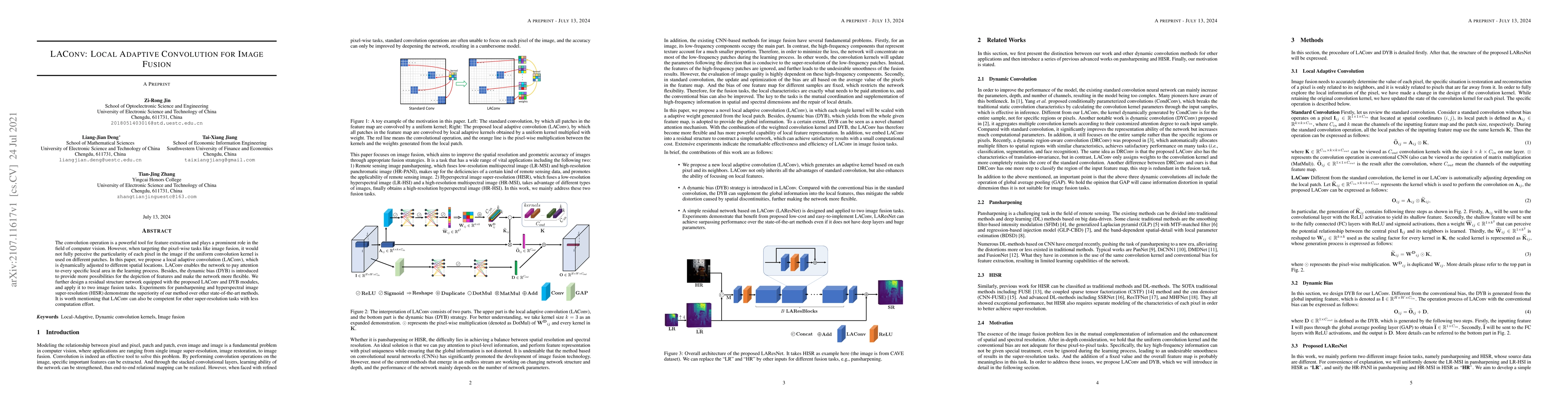 A new image fusion technique called LAConv is proposed to improve feature extraction for tasks like pansharpening and hyperspectral image super-resolution. It demonstrates superiority over state-of-the-art methods with reduced computation effort.