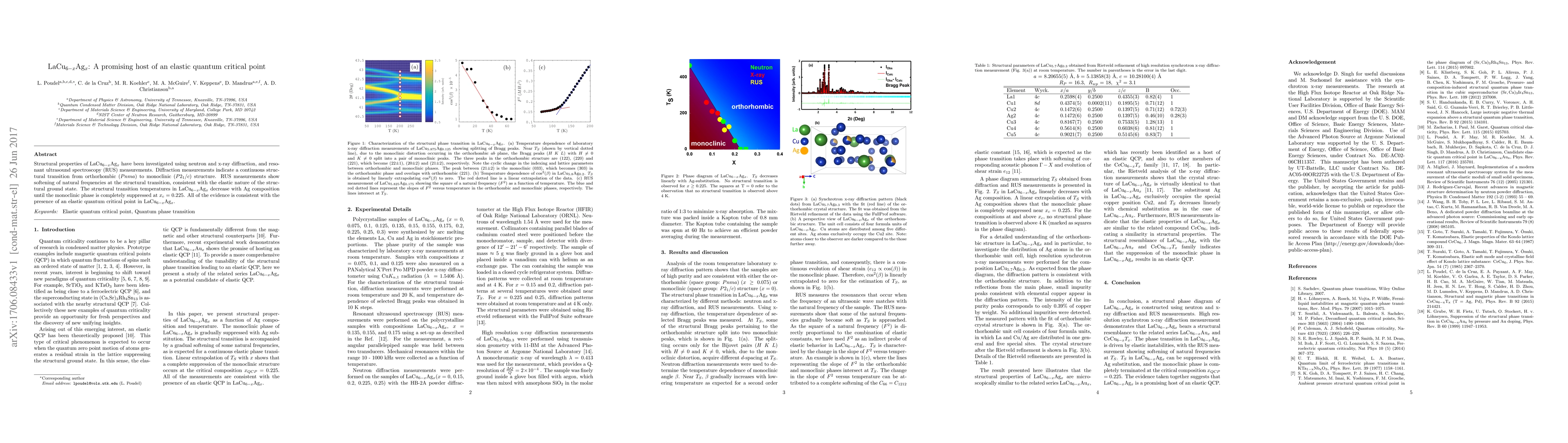 Structural properties of LaCu$_{6-x}$Ag$_{x}$ have been investigated using neutron and x-ray diffraction, and resonant ultrasound spectroscopy (RUS) measurements. Diffraction measurements indicate a continuous structural transition from orthorhombic ($Pnma$) to monoclinic ($P2_1/c$) structure. RUS measurements show softening of natural frequencies at the structural transition, consistent with the elastic nature of the structural ground state. The structural transition temperatures in LaCu$_{6-x}$Ag$_{x}$ decrease with Ag composition until the monoclinic phase is completely suppressed at $x_c$ = 0.225. All of the evidence is consistent with the presence of an elastic quantum critical point in LaCu$_{6-x}$Ag$_{x}$.