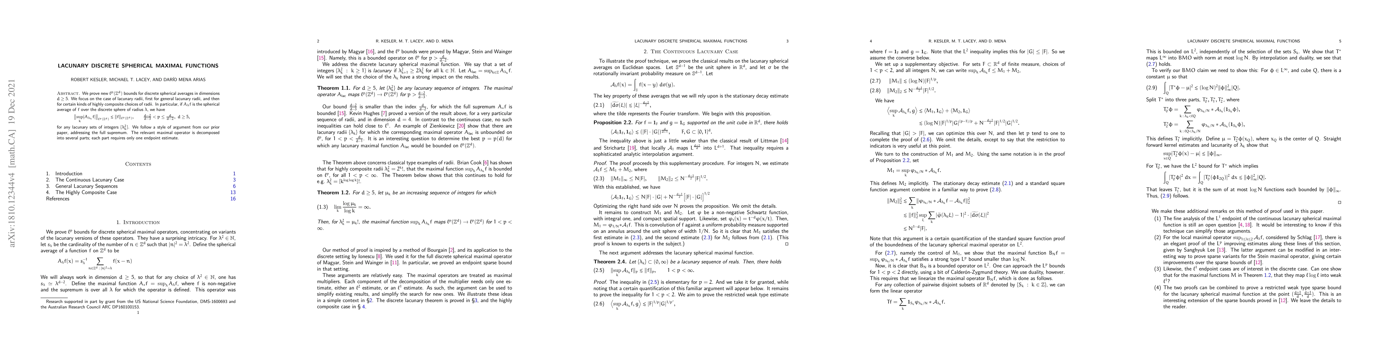 This research paper establishes new bounds for discrete spherical averages in dimensions d >= 5, specifically proving that their Lp norm is less than or equal to the Lp norm of the original function for certain values of p and lacunary radii.