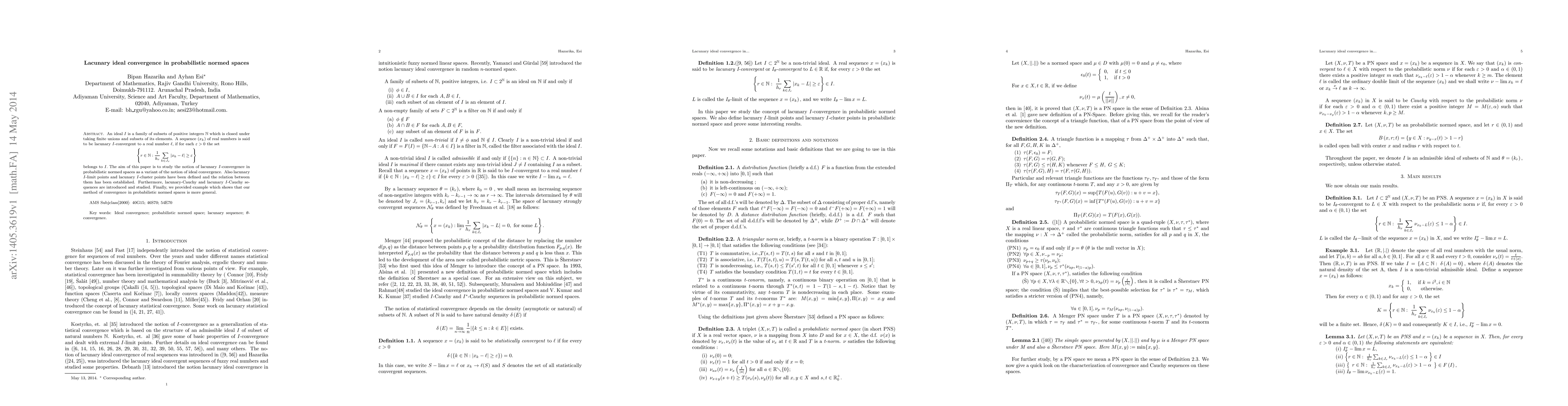This paper explores lacunary $I$-convergence in probabilistic normed spaces, defining lacunary $I$-limit points and cluster points, and introducing lacunary-Cauchy sequences. It demonstrates that this method of convergence is more general than traditional approaches.