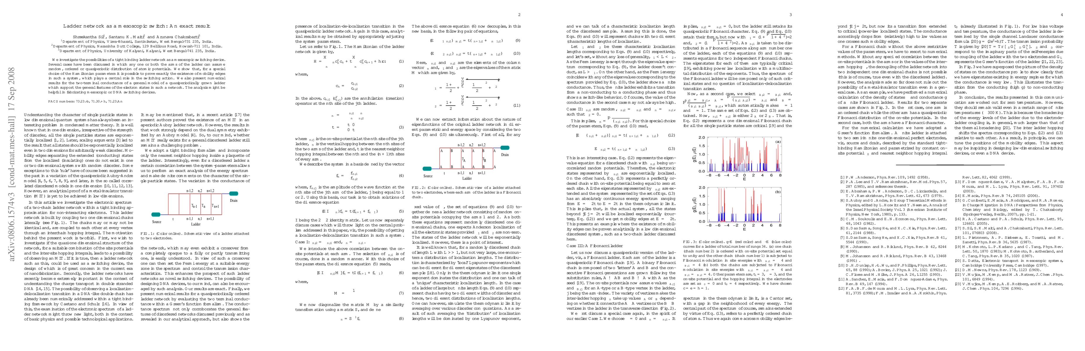 We investigate the possibilities of a tight binding ladder network as a mesoscopic switching device. Several cases have been discussed in which any one or both the arms of the ladder can assume random, ordered or quasiperiodic distribution of atomic potentials. We show that, for a special choice of the Hamiltonian parameters it is possible to prove exactly the existence of mobility edges in such a system, which plays a central role in the switching action. We also present numerical results for the two-terminal conductance of a general model of a quasiperiodically grown ladder which support the general features of the electron states in such a network. The analysis might be helpful in fabricating mesoscopic or DNA switching devices.