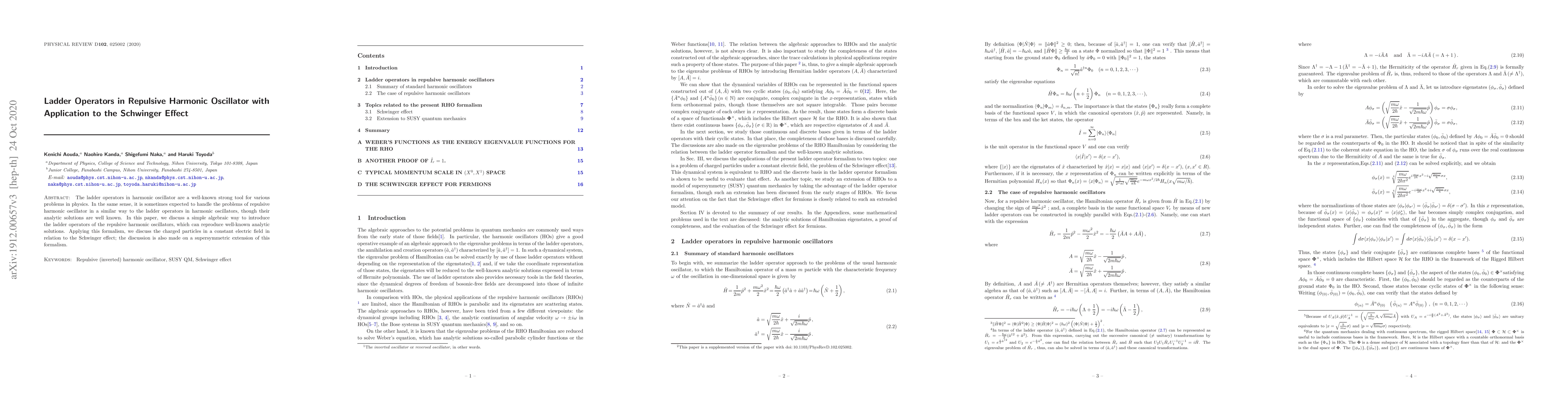This paper introduces algebraic ladder operators for a repulsive harmonic oscillator, demonstrating their ability to reproduce known analytic solutions. It applies this formalism to charged particles in a constant electric field to discuss the Schwinger effect and extends the approach to a supersymmetric framework.