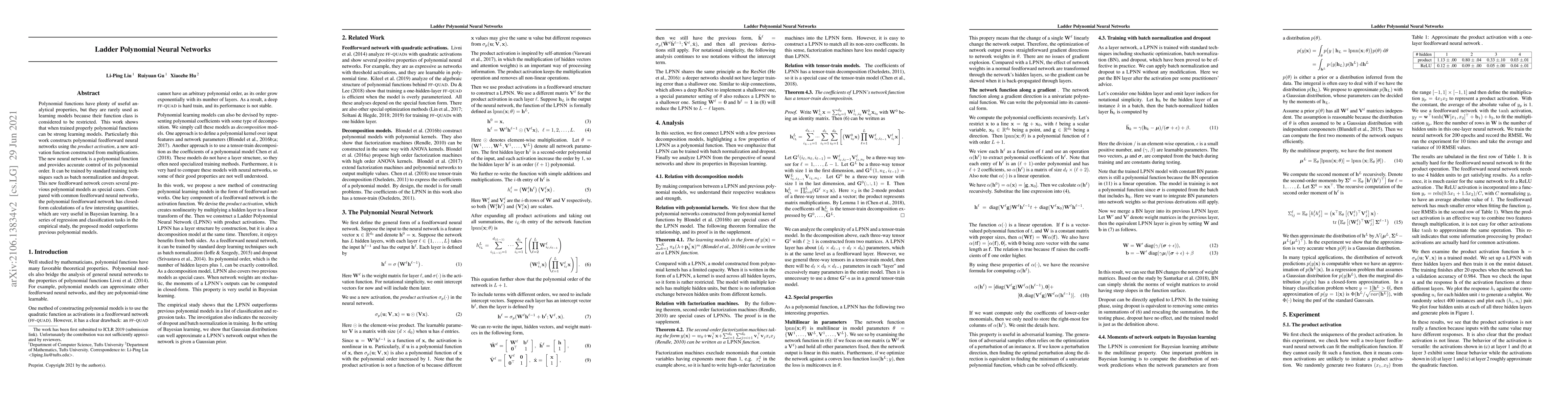 This paper introduces ladder polynomial neural networks using a novel product activation function, demonstrating that properly trained polynomial functions can serve as effective learning models. The proposed network offers precise control over polynomial order and outperforms previous models in regression and classification tasks.