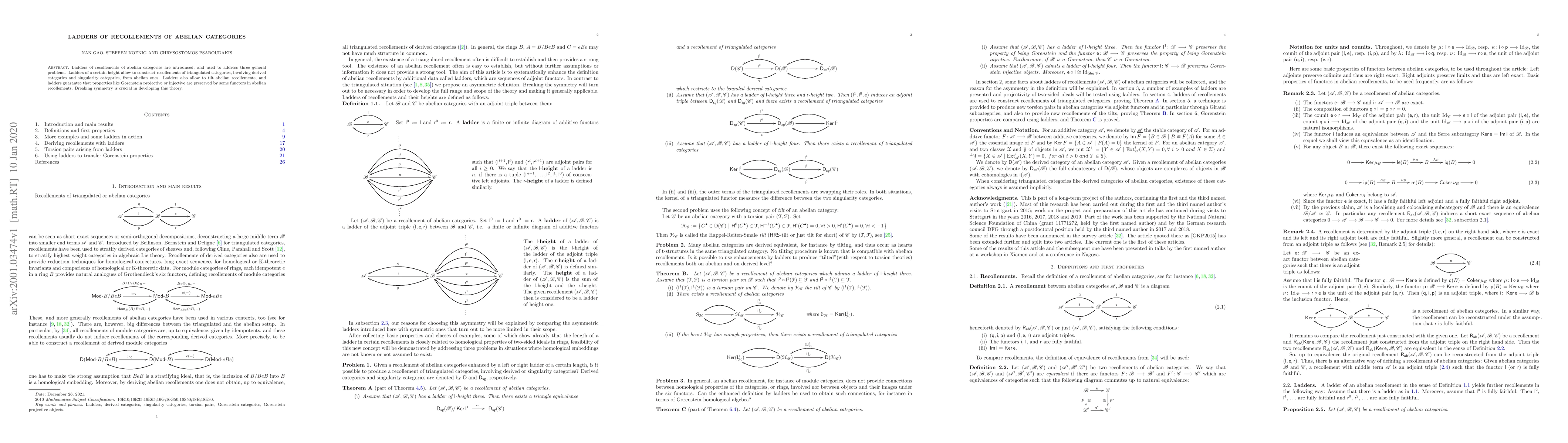 The paper introduces ladders of recollements of abelian categories, utilizing them to address problems related to triangulated categories, tilting abelian recollements, and preservation of properties like Gorenstein projective or injective under certain functors in abelian recollements.