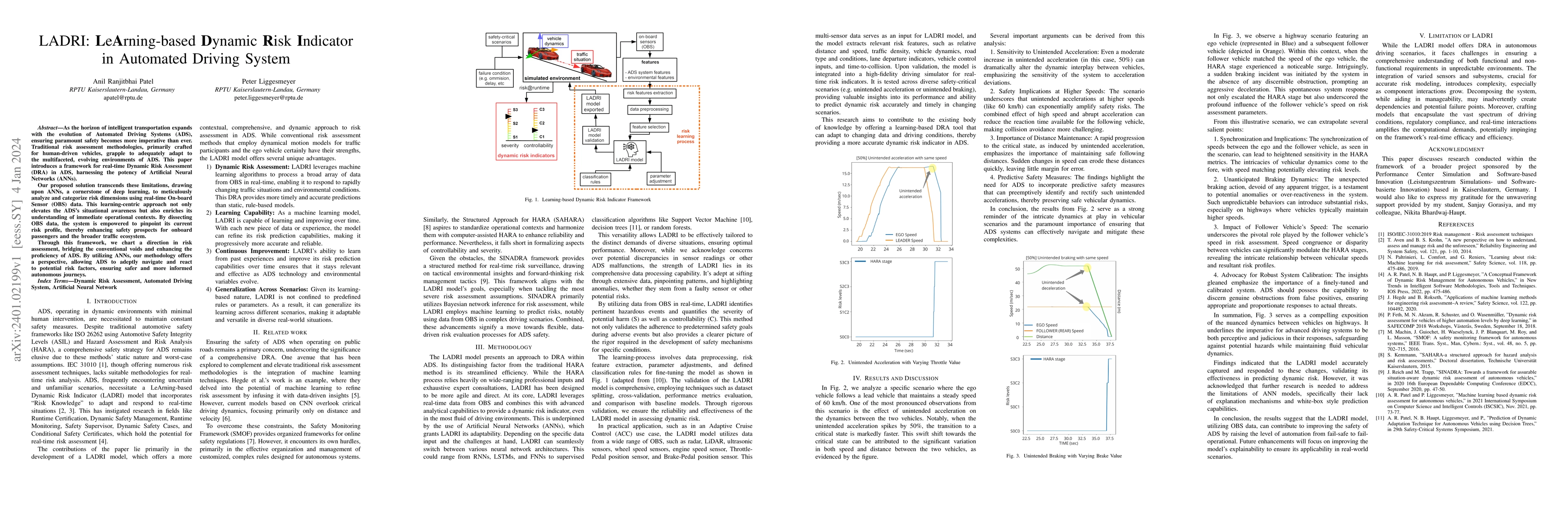 This paper proposes a Learning-based Dynamic Risk Indicator (LADRI) framework for Automated Driving Systems (ADS) using Artificial Neural Networks (ANNs) to enhance real-time risk assessment, leveraging On-board Sensor data for improved safety and situational awareness. The ANN-driven approach aims to bridge traditional risk assessment limitations and elevate the proficiency of ADS in dynamic environments.