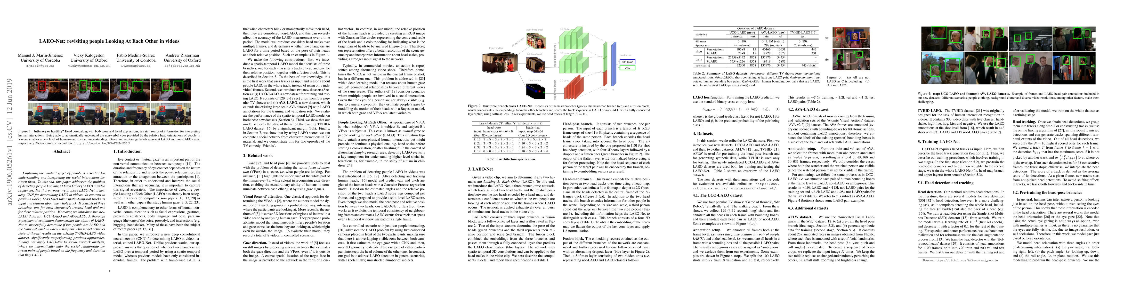 Capturing the `mutual gaze' of people is essential for understanding and interpreting the social interactions between them. To this end, this paper addresses the problem of detecting people Looking At Each Other (LAEO) in video sequences. For this purpose, we propose LAEO-Net, a new deep CNN for determining LAEO in videos. In contrast to previous works, LAEO-Net takes spatio-temporal tracks as input and reasons about the whole track. It consists of three branches, one for each character's tracked head and one for their relative position. Moreover, we introduce two new LAEO datasets: UCO-LAEO and AVA-LAEO. A thorough experimental evaluation demonstrates the ability of LAEONet to successfully determine if two people are LAEO and the temporal window where it happens. Our model achieves state-of-the-art results on the existing TVHID-LAEO video dataset, significantly outperforming previous approaches. Finally, we apply LAEO-Net to social network analysis, where we automatically infer the social relationship between pairs of people based on the frequency and duration that they LAEO.
