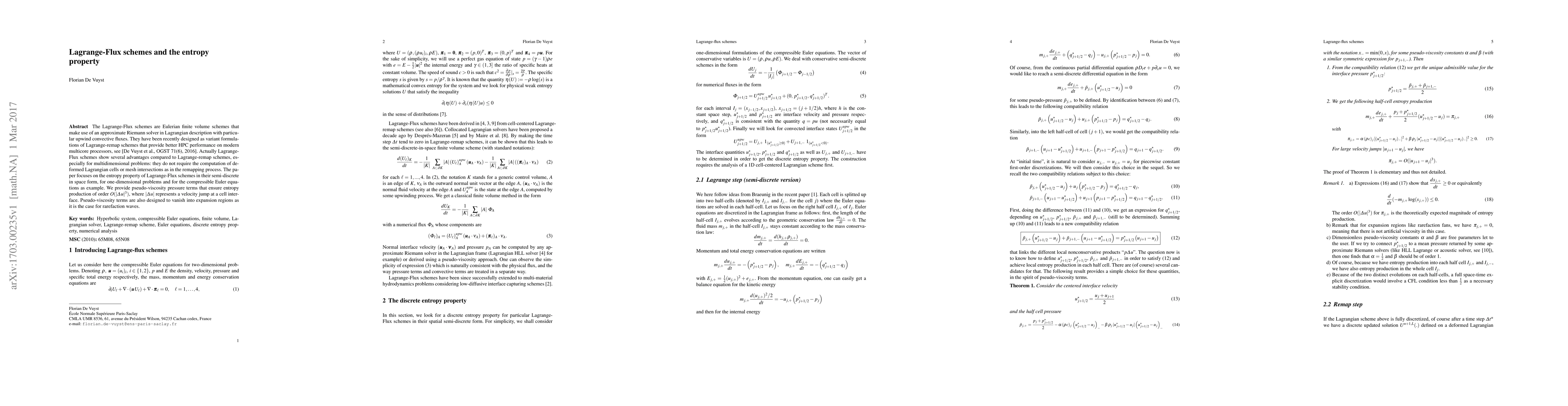 This paper investigates Lagrange-Flux schemes, which are Eulerian finite volume methods that utilize an approximate Riemann solver in a Lagrangian framework, focusing on their entropy property. The authors introduce pseudo-viscosity pressure terms to ensure entropy production of order $O(|\Delta u|^3)$ and demonstrate that these terms vanish in expansion regions, enhancing performance for multidimensional problems.