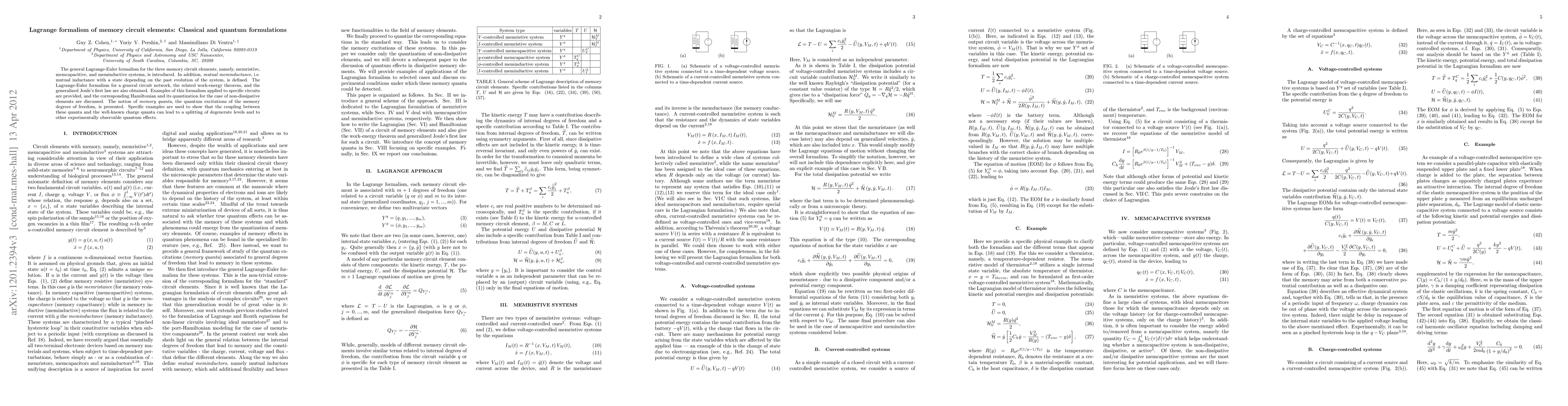 This paper introduces the Lagrange-Euler formalism for memristive, memcapacitive, and meminductive systems, including the concept of mutual meminductance. It also discusses the Hamiltonian formulation and its quantization, revealing quantum effects such as the splitting of degenerate levels due to coupling between memory and charge quanta.