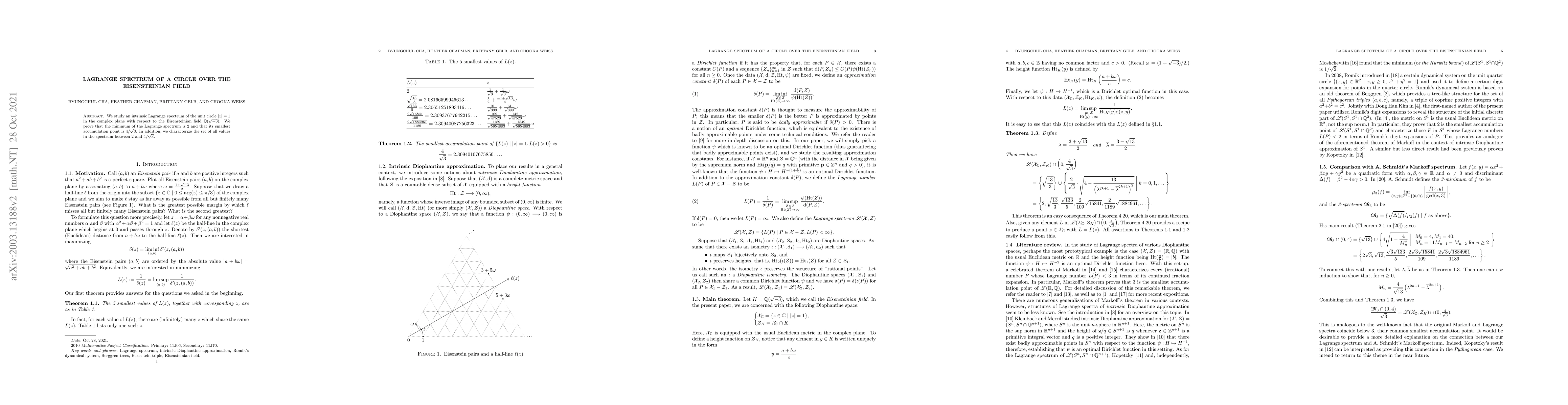 We study an intrinsic Lagrange spectrum of the unit circle $|z|=1$ in the complex plane with respect to the Eisensteinian field $\mathbb{Q}(\sqrt{-3})$. We prove that the minimum of the Lagrange spectrum is $2$ and that its smallest accumulation point is $4/\sqrt{3}$. In addition, we characterize the set of all values in the spectrum between $2$ and $4/\sqrt3$.