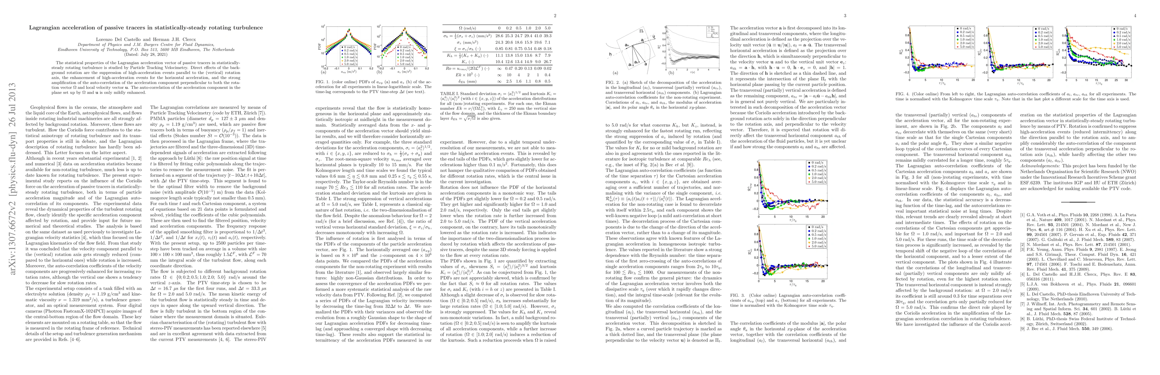 Research finds that rotating turbulence suppresses high-acceleration events parallel to its axis but enhances those in the horizontal plane, while also amplifying acceleration correlations perpendicular to both rotation and local velocity vectors.
