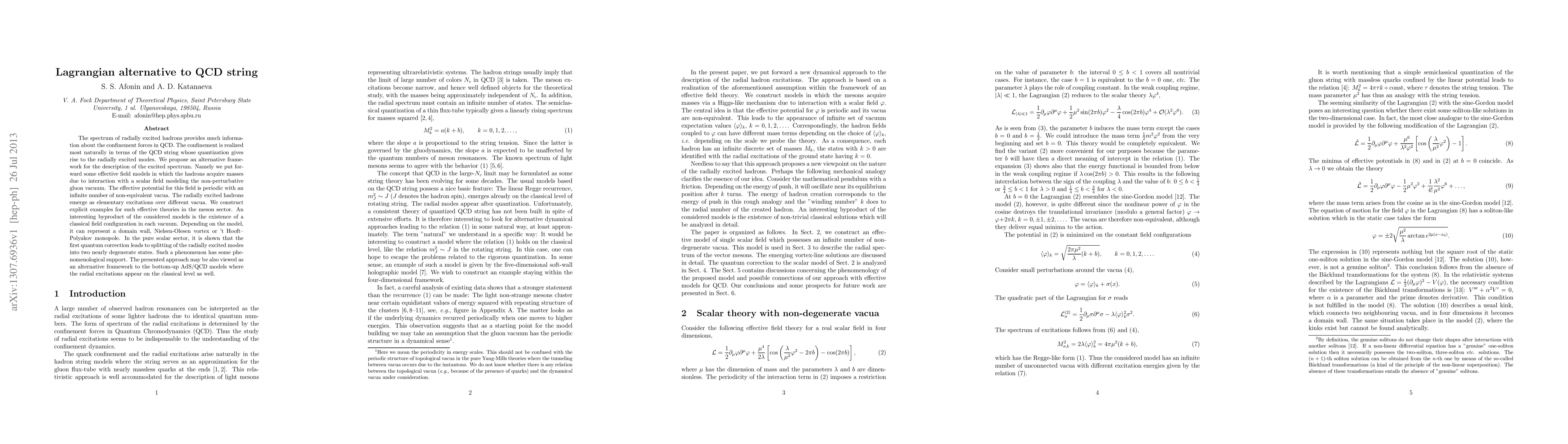 The spectrum of radially excited hadrons provides much information about the confinement forces in QCD. The confinement is realized most naturally in terms of the QCD string whose quantization gives rise to the radially excited modes. We propose an alternative framework for the description of the excited spectrum. Namely we put forward some effective field models in which the hadrons acquire masses due to interaction with a scalar field modeling the non-perturbative gluon vacuum. The effective potential for this field is periodic with an infinite number of non-equivalent vacua. The radially excited hadrons emerge as elementary excitations over different vacua. We construct explicit examples for such effective theories in the meson sector. An interesting byproduct of the considered models is the existence of a classical field configuration in each vacuum. Depending on the model, it can represent a domain wall, Nielsen-Olesen vortex or 't Hooft-Polyakov monopole. In the pure scalar sector, it is shown that the first quantum correction leads to splitting of the radially excited modes into two nearly degenerate states. Such a phenomenon has some phenomenological support. The presented approach may be also viewed as an alternative framework to the bottom-up AdS/QCD models where the radial excitations appear on the classical level as well.