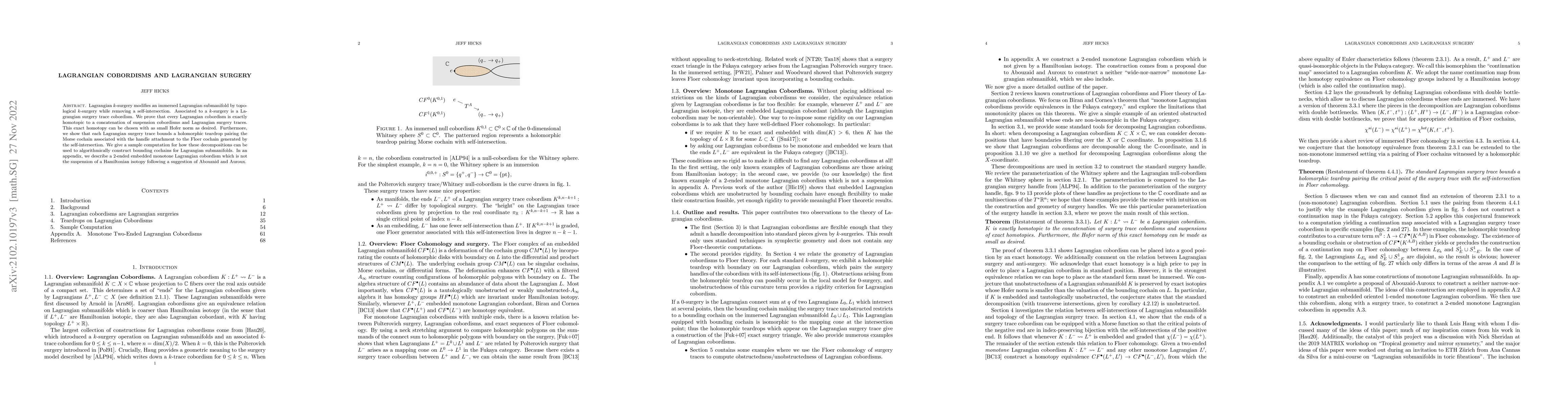 This paper explores Lagrangian $k$-surgery, demonstrating that any Lagrangian cobordism can be exactly homotopically decomposed into suspension cobordisms and Lagrangian surgery traces, with minimal Hofer norm. It also establishes a pairing between Morse and Floer cochains through these surgeries, providing an algorithmic method for constructing bounding cochains. An appendix presents a non-suspended embedded Lagrangian cobordism.