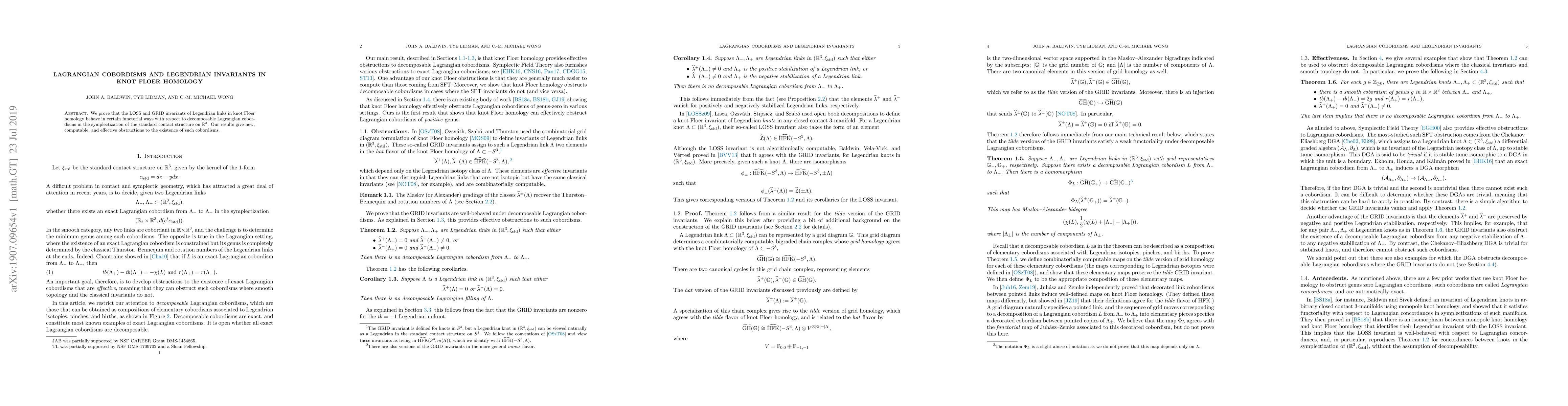 The paper establishes functorial behavior of LOSS and GRID invariants under Lagrangian cobordisms in knot Floer homology, providing new computable obstructions for the existence of such cobordisms.