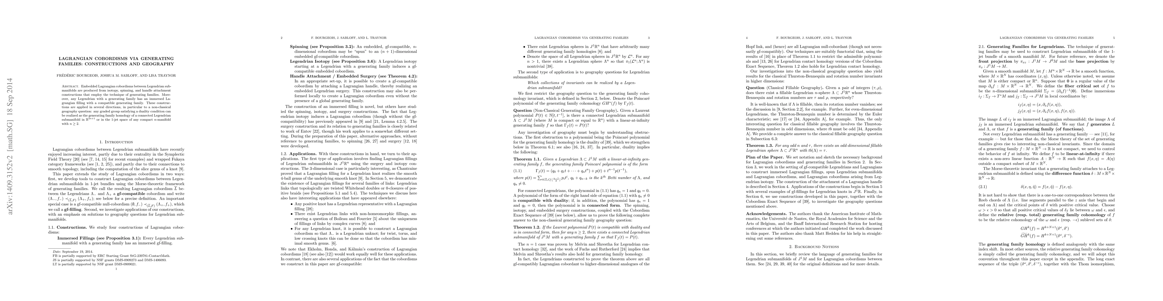 The paper introduces a detailed methodology for constructing Lagrangian cobordisms via generating families, enriching the theoretical framework for Legendrian submanifolds.