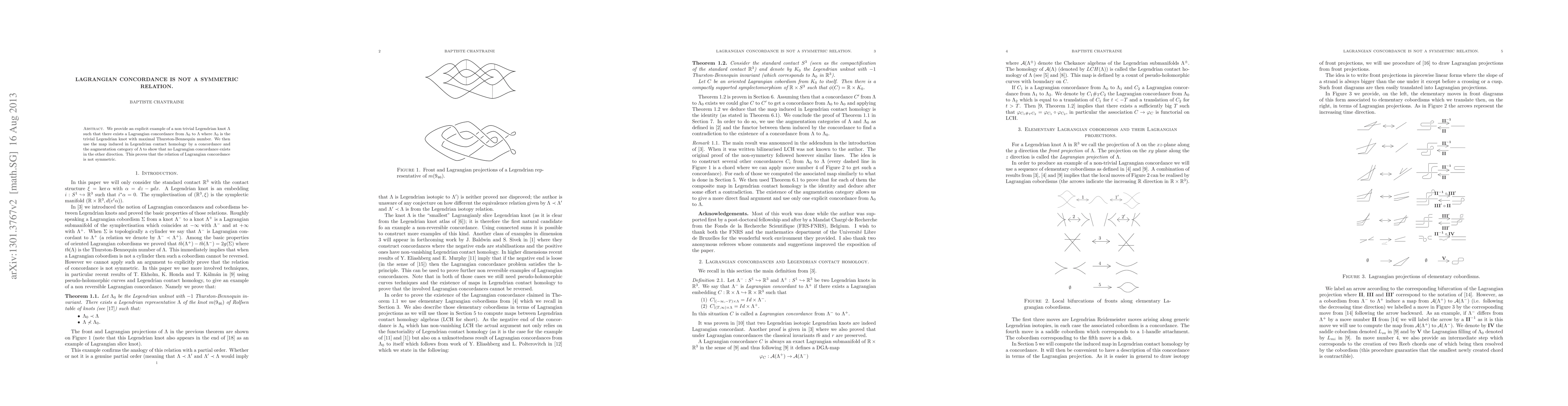This paper demonstrates that Lagrangian concordance is not a symmetric relation by presenting a non-trivial Legendrian knot for which a concordance exists from the trivial knot to the knot but not vice versa, using Legendrian contact homology and augmentation categories.