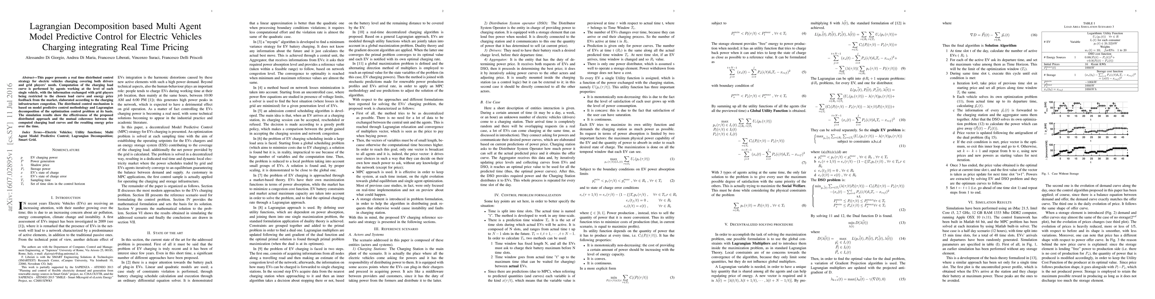 This paper proposes a distributed control strategy for electric vehicle charging using Lagrangian decomposition and model predictive control, balancing drivers' and grid players' needs through real-time pricing. Simulation results demonstrate the effectiveness of the approach and coherence between charging load curves and energy prices.