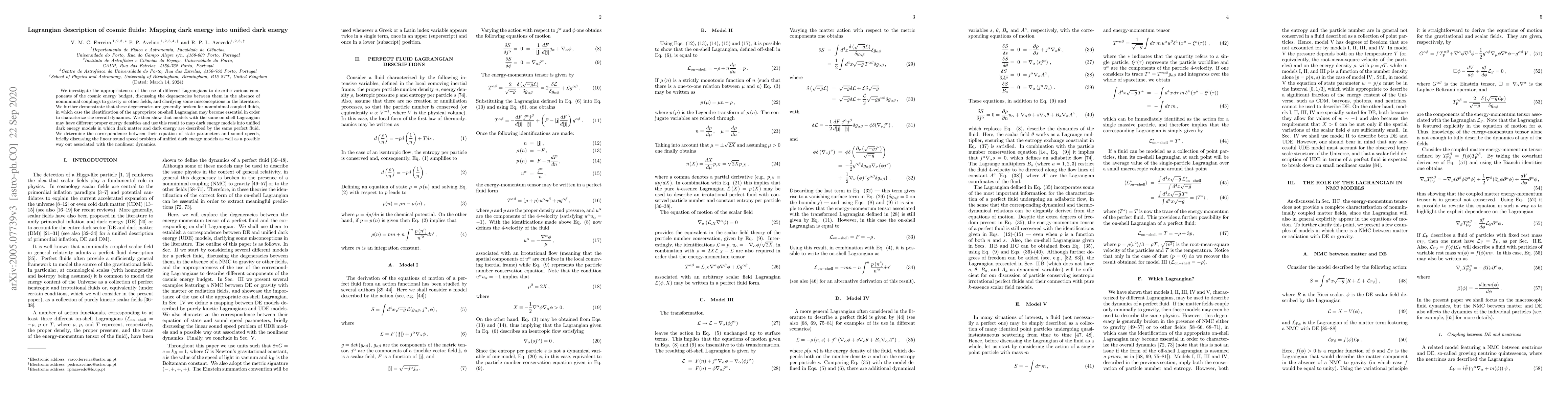 We investigate the appropriateness of the use of different Lagrangians to describe various components of the cosmic energy budget, discussing the degeneracies between them in the absence of nonminimal couplings to gravity or other fields, and clarifying some misconceptions in the literature. We further demonstrate that these degeneracies are generally broken for nonminimal coupled fluids, in which case the identification of the appropriate on-shell Lagrangian may become essential in order characterize the overall dynamics. We then show that models with the same on-shell Lagrangian may have different proper energy densities and use this result to map dark energy models into unified dark energy models in which dark matter and dark energy are described by the same perfect fluid. We determine the correspondence between their equation of state parameters and sound speeds, briefly discussing the linear sound speed problem of unified dark energy models as well as a possible way out associated to the nonlinear dynamics.