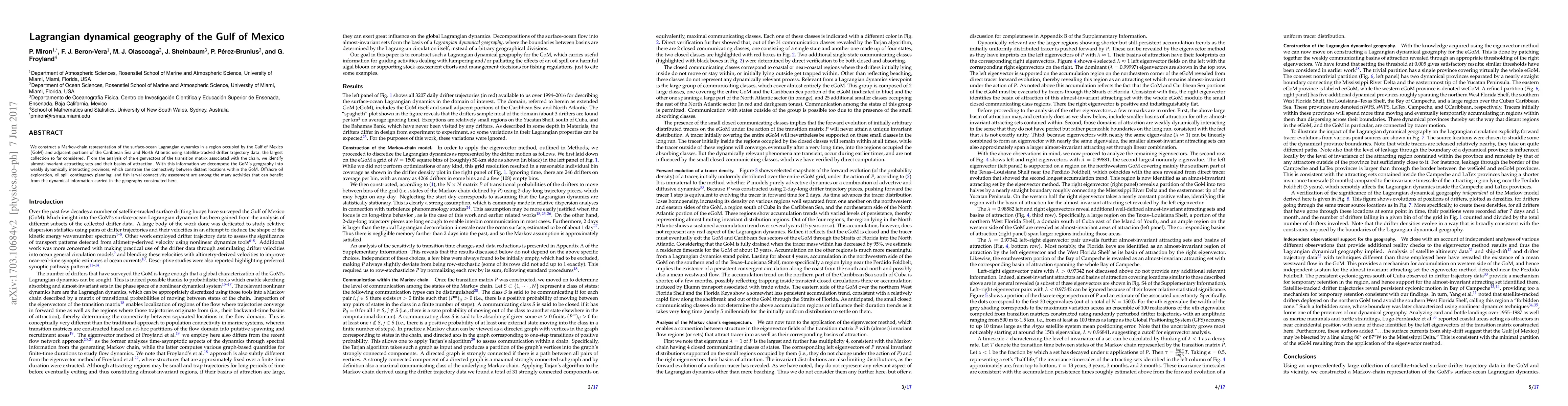 We construct a Markov-chain representation of the surface-ocean Lagrangian dynamics in a region occupied by the Gulf of Mexico (GoM) and adjacent portions of the Caribbean Sea and North Atlantic using satellite-tracked drifter trajectory data, the largest collection so far considered. From the analysis of the eigenvectors of the transition matrix associated with the chain, we identify almost-invariant attracting sets and their basins of attraction. With this information we decompose the GoM's geography into weakly dynamically interacting provinces, which constrain the connectivity between distant locations within the GoM. Offshore oil exploration, oil spill contingency planning, and fish larval connectivity assessment are among the many activities that can benefit from the dynamical information carried in the geography constructed here.