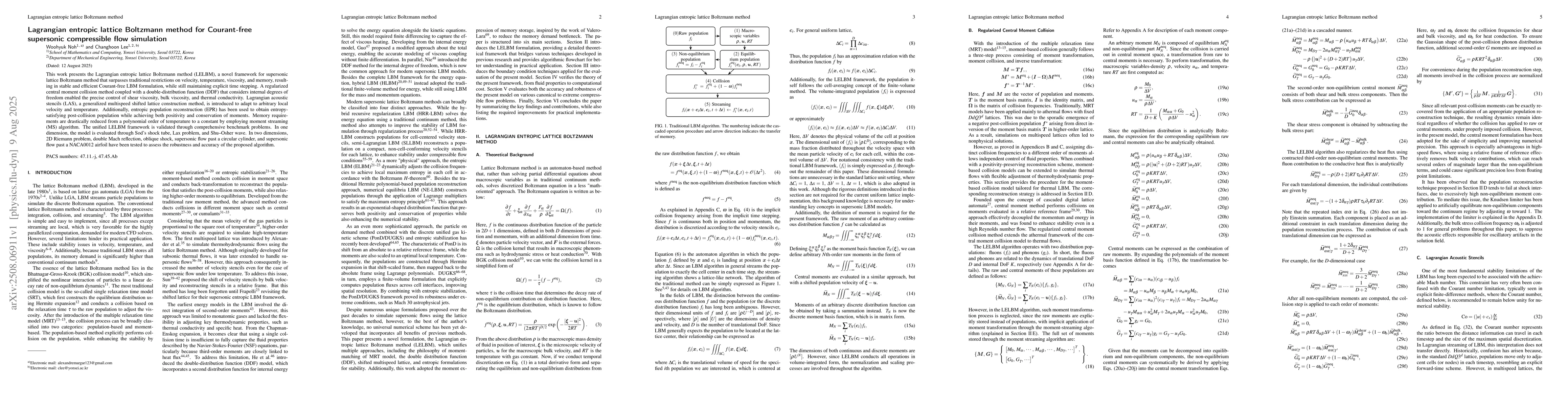 This work presents the Lagrangian entropic lattice Boltzmann method (LELBM), a novel framework for supersonic lattice Boltzmann method that surpasses traditional restrictions on velocity, temperature, viscosity, and memory, resulting in stable and efficient Courant-free LBM formulation, while still maintaining explicit time stepping. A regularized central moment collision method coupled with a double-distribution function (DDF) that considers internal degrees of freedom enabled the precise control of shear viscosity, bulk viscosity, and thermal conductivity. Lagrangian acoustic stencils (LAS), a generalized multispeed shifted lattice construction method, is introduced to adapt to arbitrary local velocity and temperature. Additionally, entropic population reconstruction (EPR) has been used to obtain entropy-satisfying post-collision population while achieving both positivity and conservation of moments. Memory requirements are drastically reduced from a polynomial order of temperature to a constant by employing moment streaming (MS) algorithm. The unified LELBM framework is validated through comprehensive benchmark problems. In one dimension, the model is evaluated through Sod's shock tube, Lax problem, and Shu-Osher wave. In two dimensions, 2D Riemann problem, double Mach reflection, oblique shock, supersonic flow past a circular cylinder, and supersonic flow past a NACA0012 airfoil have been tested to assess the robustness and accuracy of the proposed algorithm.