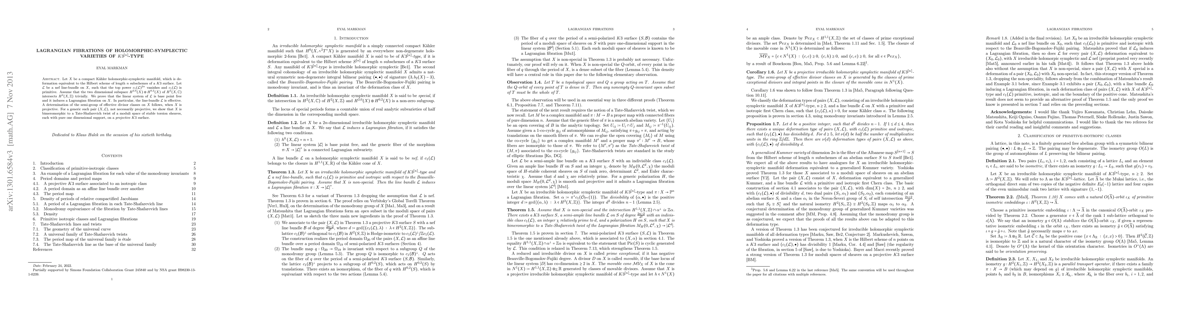 Let X be a compact Kahler holomorphic-symplectic manifold, which is deformation equivalent to the Hilbert scheme of length n subschemes of a K3 surface. Let L be a nef line-bundle on X, such that the 2n-th power of c_1(L) vanishes and c_1(L) is primitive. Assume that the two dimensional subspace H^{2,0}(X) + H^{0,2}(X), of the second cohomology of X with complex coefficients, intersects trivially the integral cohomology. We prove that the linear system of L is base point free and it induces a Lagrangian fibration on X. In particular, the line-bundle L is effective. A determination of the semi-group of effective divisor classes on X follows, when X is projective. For a generic such pair (X,L), not necessarily projective, we show that X is bimeromorphic to a Tate-Shafarevich twist of a moduli space of stable torsion sheaves, each with pure one dimensional support, on a projective K3 surface.