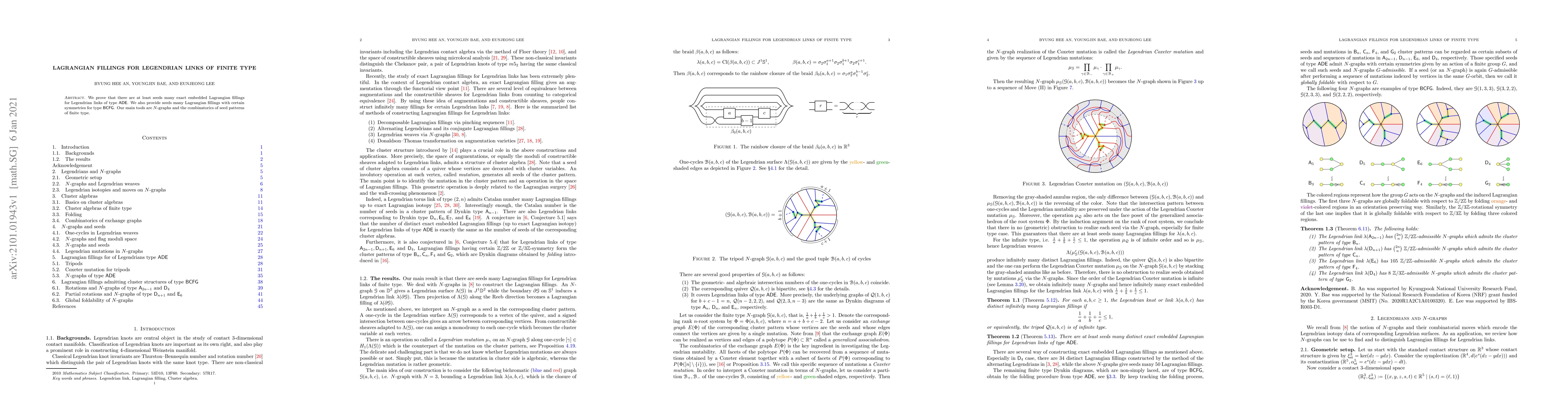 We prove that there are at least seeds many exact embedded Lagrangian fillings for Legendrian links of type $\mathsf{ADE}$. We also provide seeds many Lagrangian fillings with certain symmetries for type $\mathsf{BCFG}$. Our main tools are $N$-graphs and the combinatorics of seed patterns of finite type.
