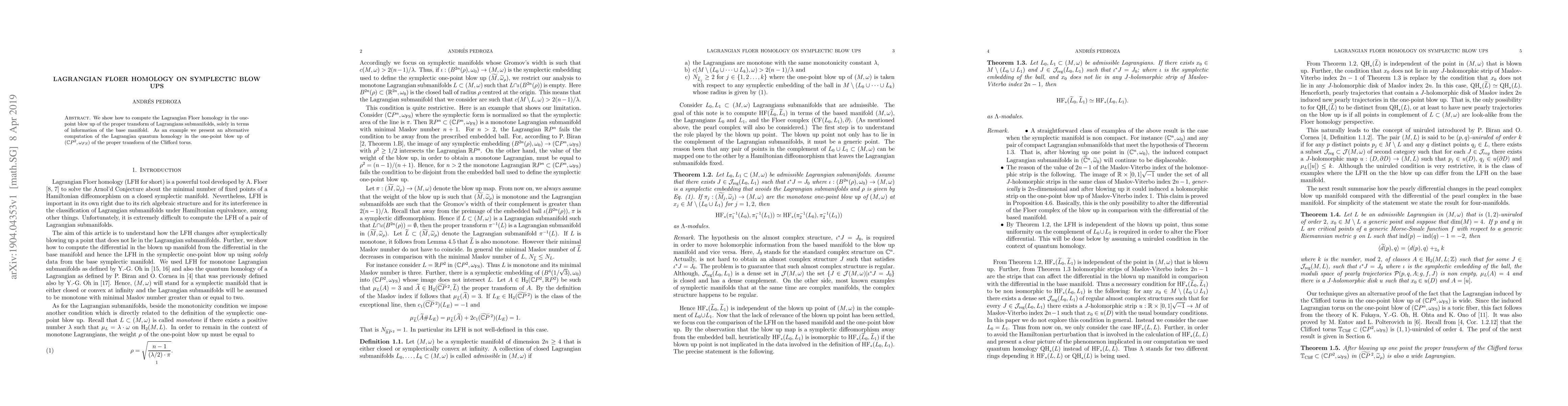 We show how to compute the Lagrangian Floer homology in the one-point blow up of the proper transform of Lagrangians submanifolds, solely in terms of information of the base manifold. As an example we present an alternative computation of the Lagrangian quantum homology in the one-point blow up of (CP^2,\omega) of the proper transform of the Clifford torus.