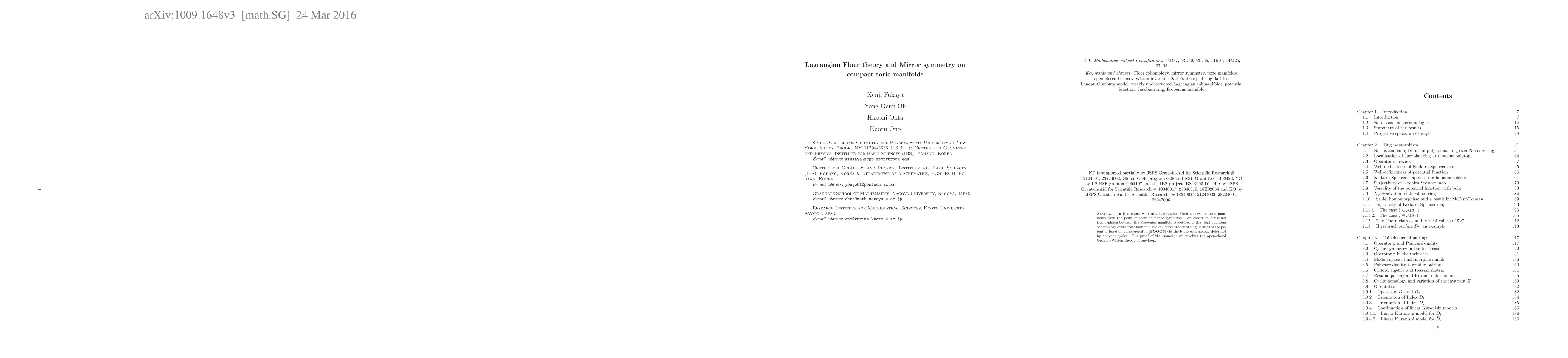 Summary: This paper establishes a natural isomorphism between the Frobenius manifold structures of the quantum cohomology of compact toric manifolds and Saito's singularity theory, using Lagrangian Floer theory and open-closed Gromov-Witten theory within the framework of mirror symmetry.