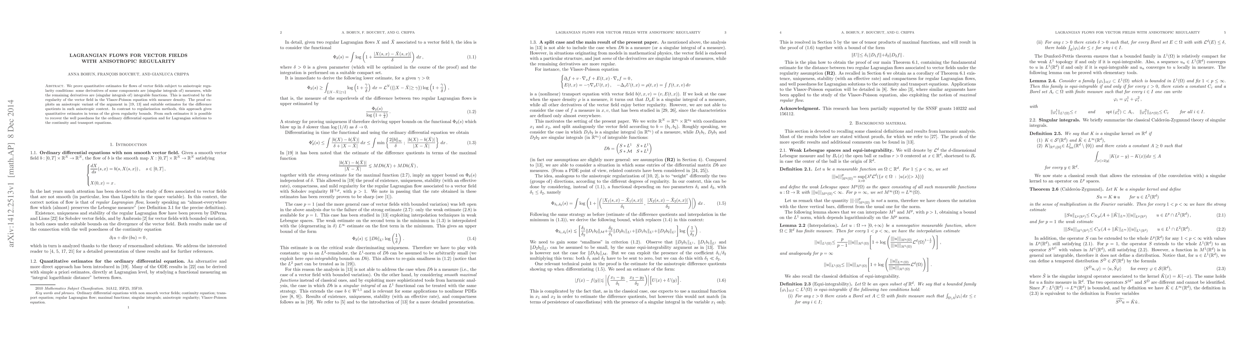 This paper establishes quantitative estimates for flows of vector fields with anisotropic regularity conditions, where some derivatives are measures and others are integrable functions. The method provides well-posedness results for ordinary differential equations and Lagrangian solutions to continuity and transport equations, leveraging an anisotropic variant of Crippa and De Lellis's argument.