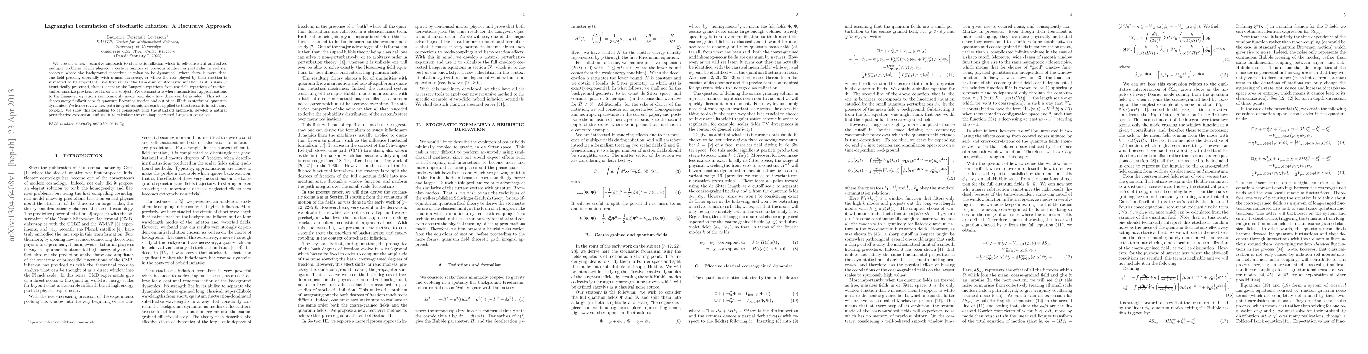 Researchers present a new recursive approach to solving stochastic inflation problems in cosmology, avoiding common inconsistencies and providing a consistent framework for realistic contexts. This method shares similarities with quantum Brownian motion and can be used to calculate one-loop corrected Langevin equations.