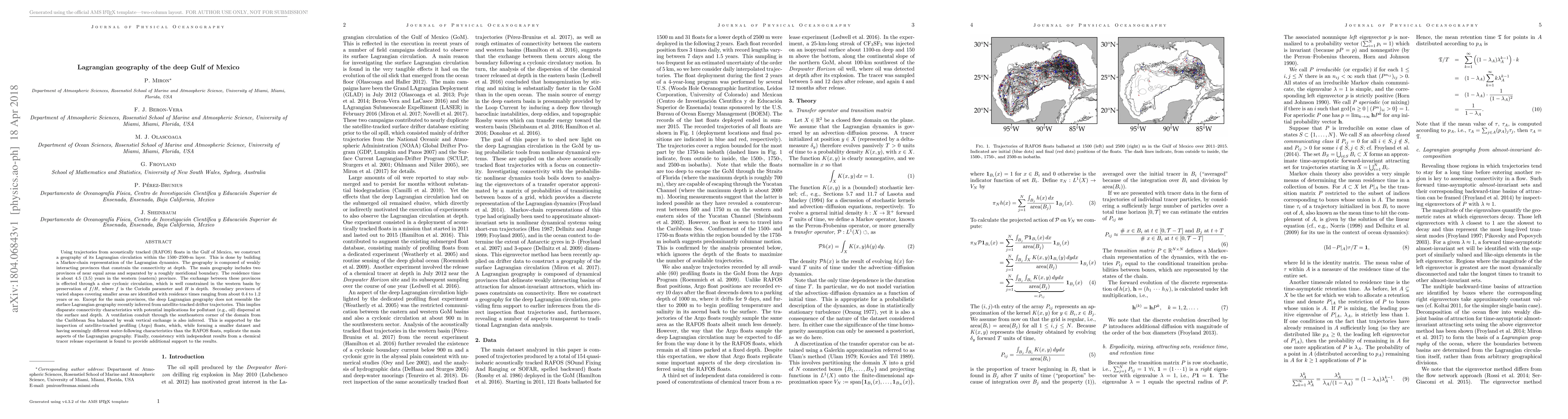 This study uses RAFOS floats to map the deep Lagrangian circulation in the Gulf of Mexico's 1500-2500m layer, revealing two main provinces with distinct residence times and a slow cyclonic exchange. The deep circulation geography differs from surface patterns, suggesting different pollutant dispersal dynamics.