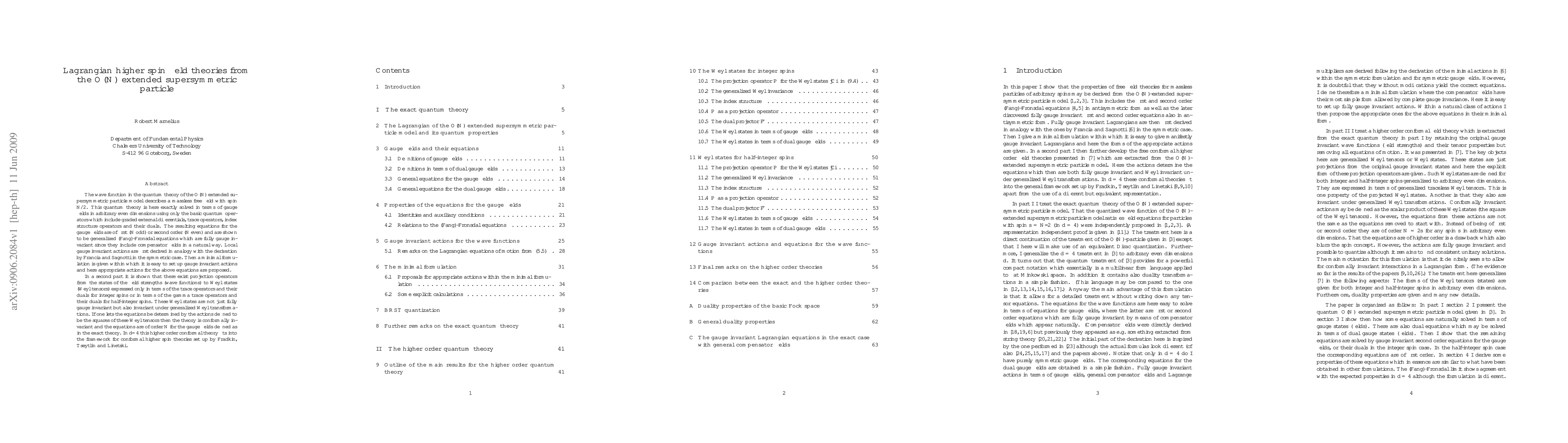 The wave function in the quantum theory of the O(N) extended supersymmetric particle model describes a massless free field with spin N/2. This quantum theory is here exactly solved in terms of gauge fields in arbitrary even dimensions using only the basic quantum operators which include graded external differentials, trace operators, index structure operators and their duals. The resulting equations for the gauge fields are of first (N odd) or second order (N even) and are shown to be generalized (Fang)-Fronsdal equations which are fully gauge invariant since they include compensator fields in a natural way. Local gauge invariant actions are first derived in analogy with the derivation by Francia and Sagnotti in the symmetric case. Then a minimal formulation is given within which it is easy to set up gauge invariant actions and here appropriate actions for the above equations are proposed. In a second part it is shown that there exist projection operators from the states of the field strengths (wave functions) to Weyl states (Weyl tensors) expressed only in terms of the trace operators and their duals for integer spins or in terms of the gamma trace operators and their duals for half-integer spins. These Weyl states are not just fully gauge invariant but also invariant under generalized Weyl transformations. If one lets the equations be determined by the actions defined to be the squares of these Weyl tensors then the theory is conformally invariant and the equations are of order N for the gauge fields defined as in the exact theory. In d=4 this higher order conformal theory fits into the framework for conformal higher spin theories set up by Fradkin, Tseytlin and Linetski.