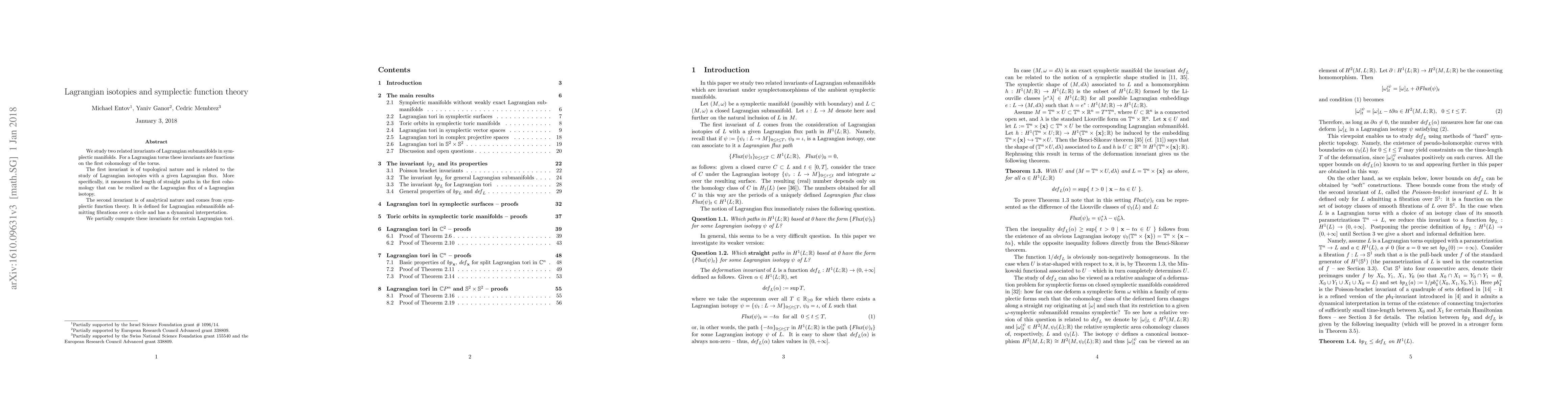 The paper introduces new invariants for Lagrangian tori, utilizing Poisson bracket theory and symplectic function theory, and establishes a symplectic invariant bpL for Lagrangian submanifolds fibered over the circle.