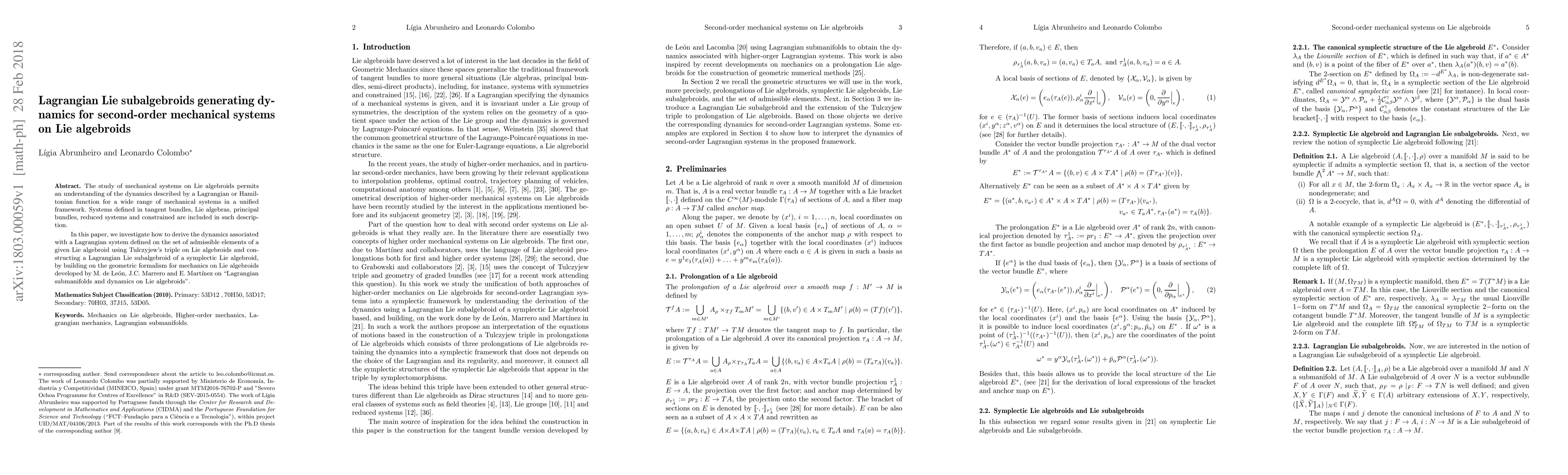 This paper explores the dynamics of second-order mechanical systems on Lie algebroids through Lagrangian Lie subalgebroids, employing Tulczyjew's triple and extending the geometric mechanics framework developed by de León, Marrero, and Martínez. It aims to unify the description of various mechanical systems within this framework.