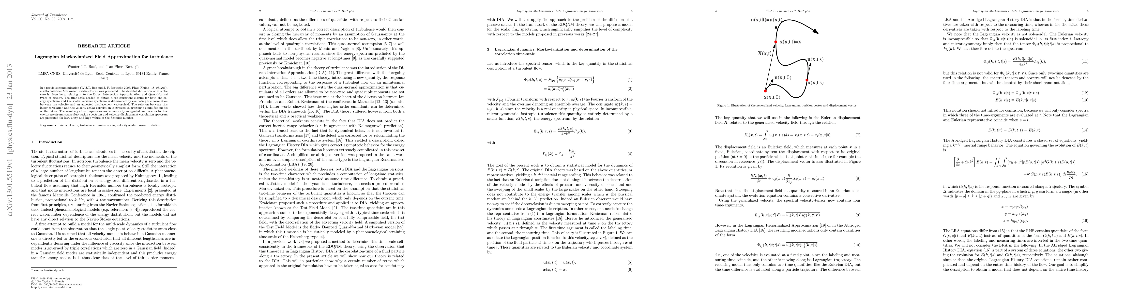 A new mathematical model for turbulence is presented, which combines elements of Markovian closure with Direct Interaction Approximation and Quasi-Normal types of closure, and provides results for energy spectrum, scalar fluctuation spectrum, and velocity-displacement correlation spectrum at different Schmidt number values.