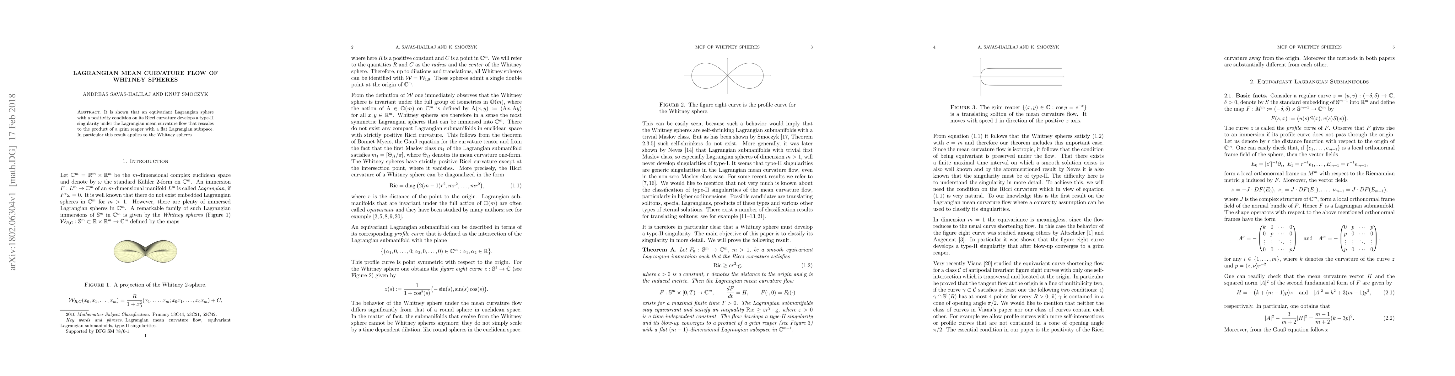 The paper employs the theory of Lagrangian mean curvature flow, analyzing equivariant Lagrangian spheres in complex spaces, specifically focusing on Whitney spheres.