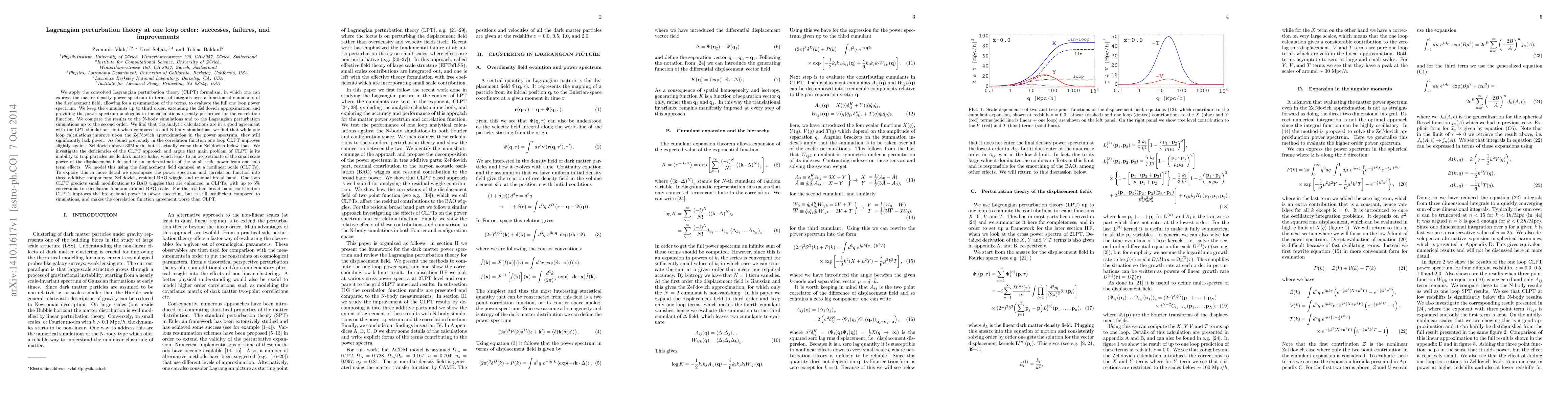 This paper evaluates the one loop order in convolved Lagrangian perturbation theory (CLPT) for the matter density power spectrum, showing improved agreement with second-order LPT simulations compared to N-body simulations. It identifies CLPT's failure to trap particles within dark matter halos as the main deficiency, leading to overestimated small-scale displacement power and underestimated halo effects.
