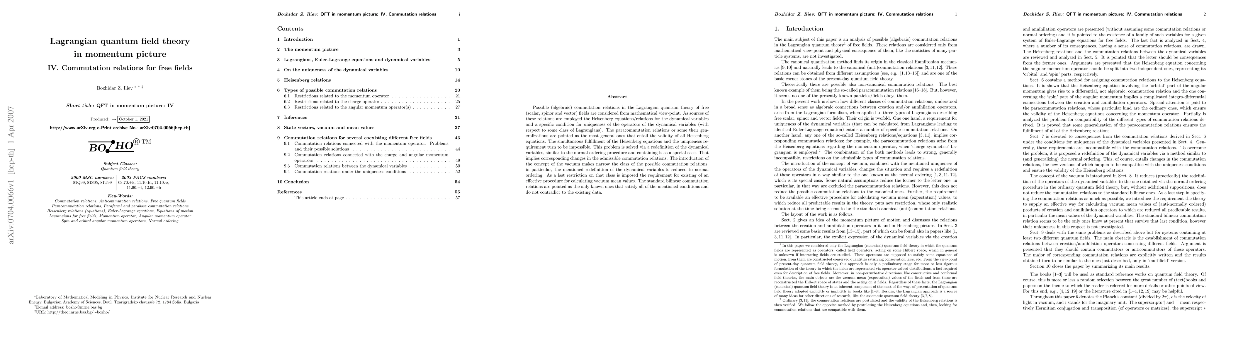 This paper explores the algebraic commutation relations for free scalar, spinor, and vector fields in Lagrangian quantum field theory, identifying paracommutation relations as the most general form. It concludes that standard bilinear commutation relations are the only ones that satisfy all necessary conditions, including the requirement for calculating vacuum mean values.